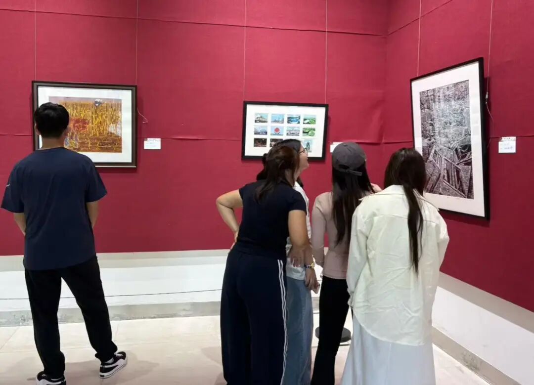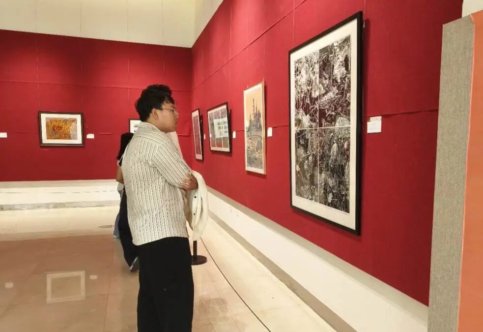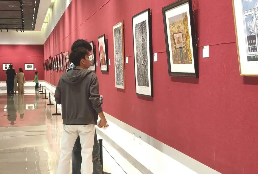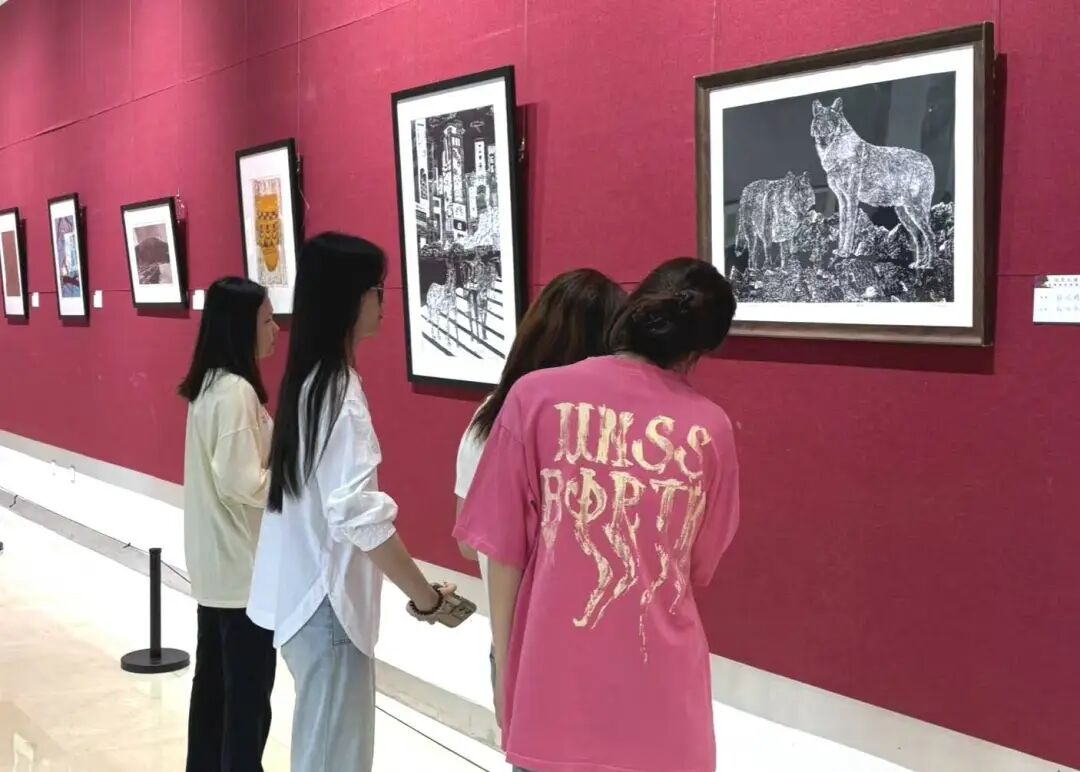 8月29日,beat365官方网站美术学院“艺心向党 红山印象”中华文化传承团前往红山区美术馆参观“视觉北疆”——赤峰地区版画展。团队成员沉浸式感受版画艺术的独特魅力,以及北疆地区深厚的文化底蕴。