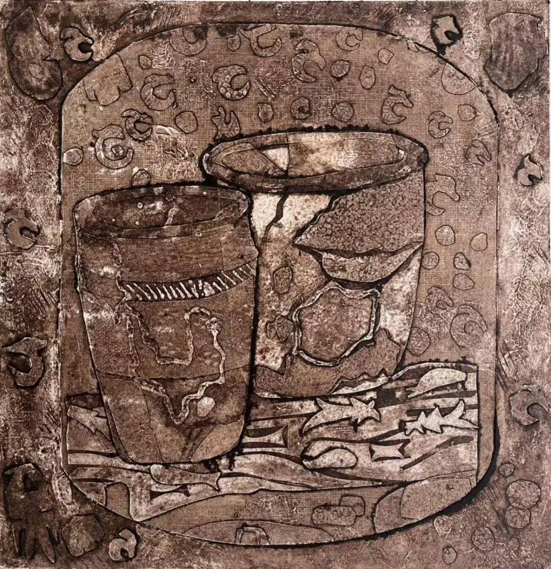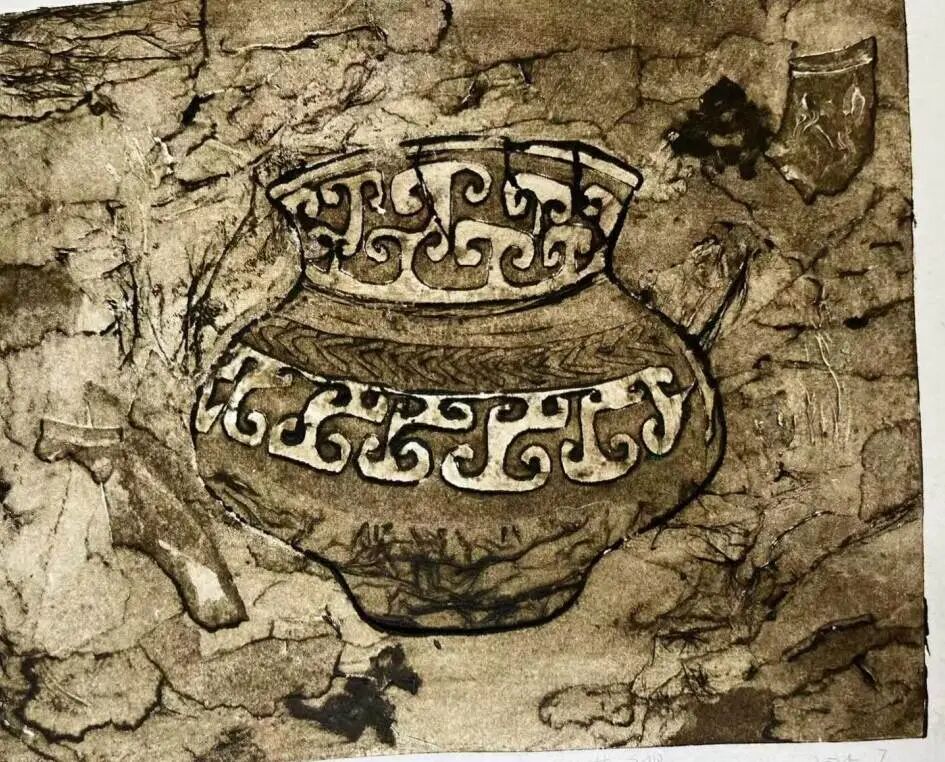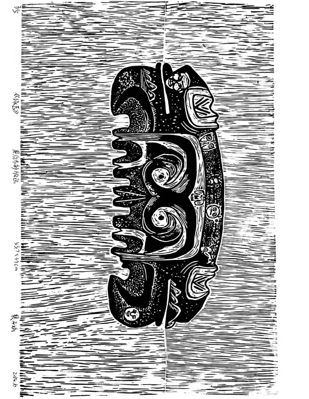 张紫轩《古韵重聚一红山文化彩陶》黑白木刻