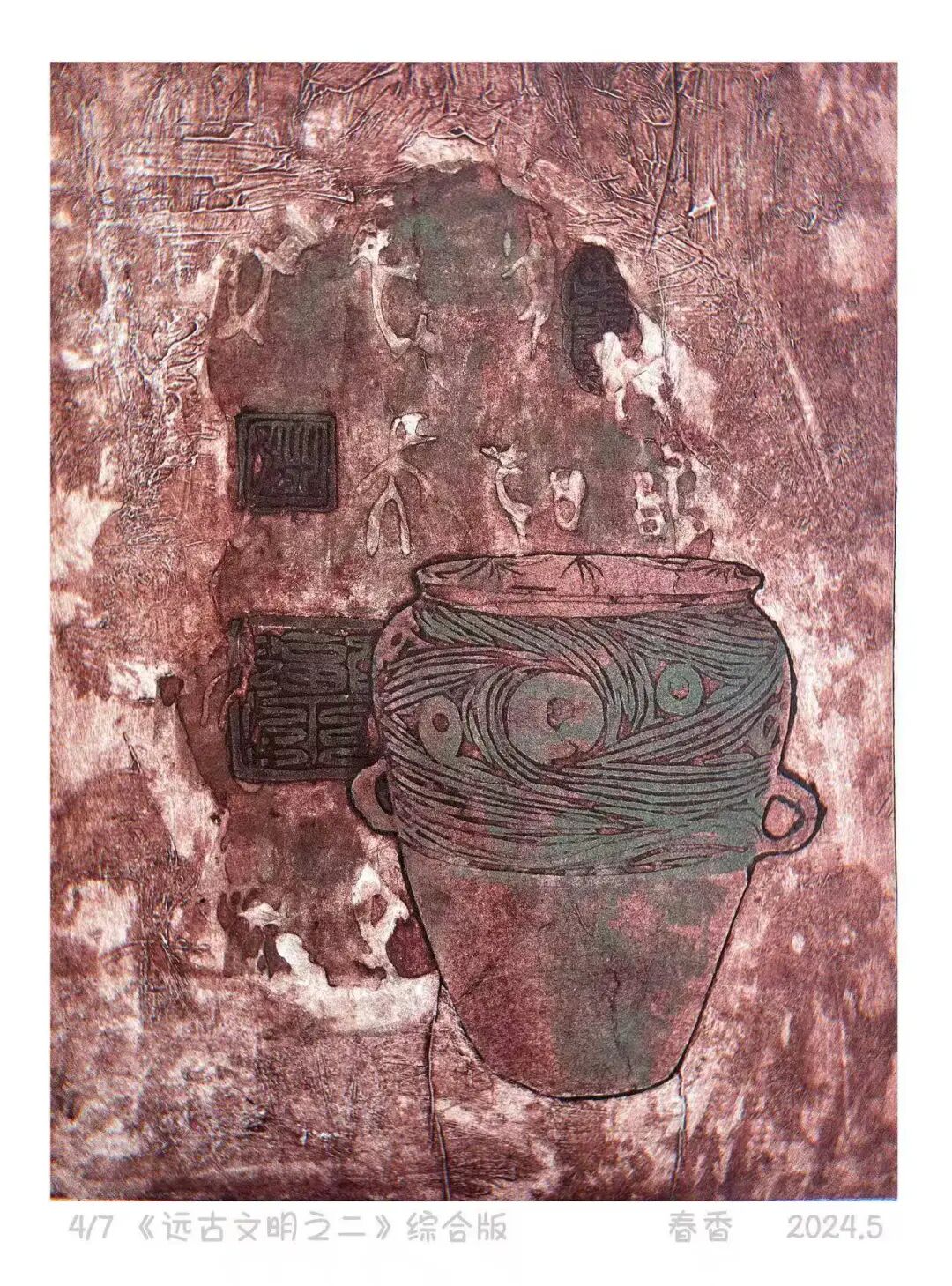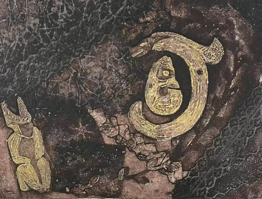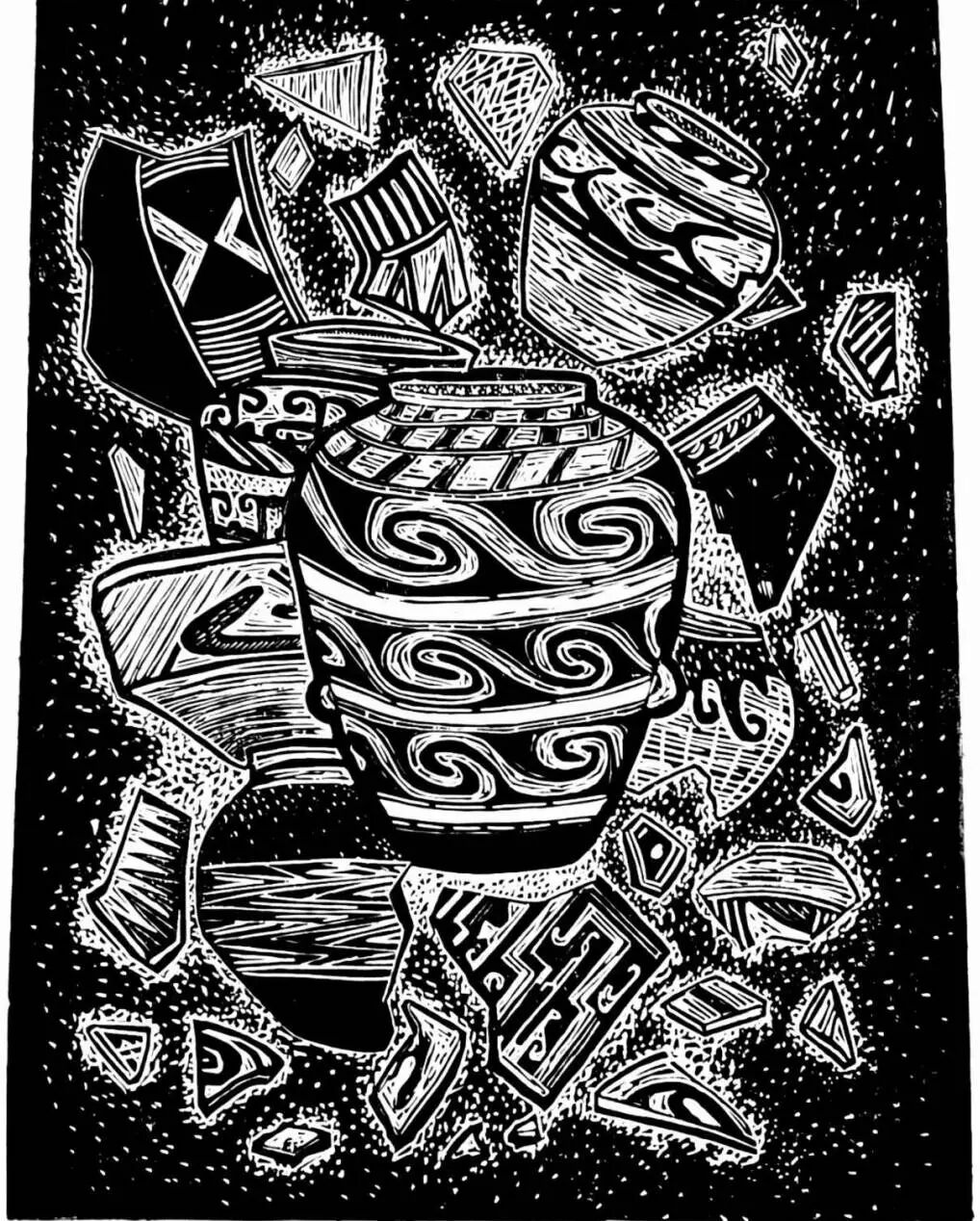 张紫轩《古韵重聚一红山文化彩陶》黑白木刻
