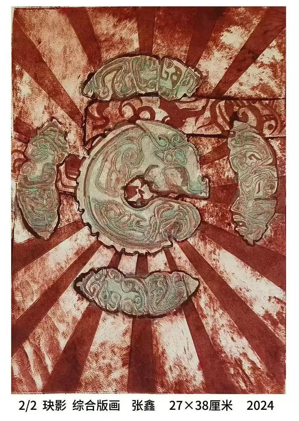 此次展览的大部分作品均出自该实践团成员,这些作品以红山文化、草原风情、时代风貌为核心主题,通过木刻、铜版等多样版画形式,生动呈现赤峰的自然景观与人文特色——既有展现红山遗址历史厚重感的创作,也有描绘牧民生活幸福场景的作品,既体现出成员扎实的专业创作功底,更彰显了青年群体对本土文化的认同与传承的责任担当。