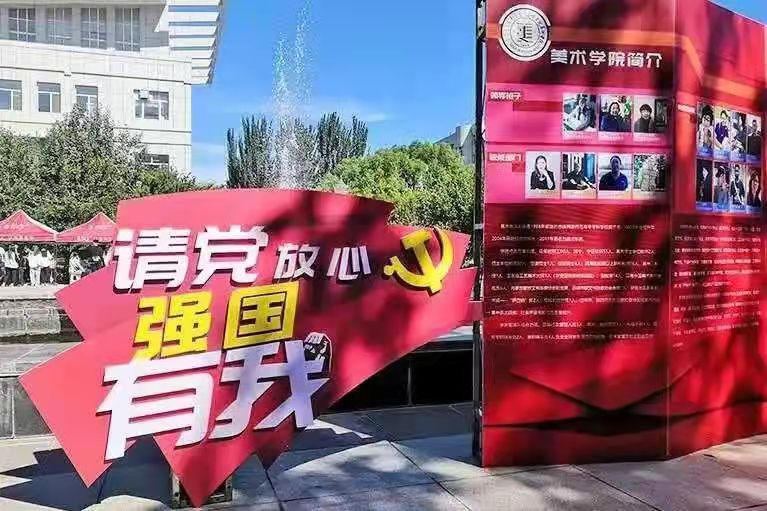 迎新氛围分外浓,创意亮点引人驻足。今年恰逢建党百年,美术学院迎新点以“中国红”为主题,“请党放心,强国有我”的红色标语、“知党恩、红心向党、新征程、永远跟党走、爱国爱党”等头饰、“中国红”口罩等一系列红色元素在潜移默化中为新生上了一堂爱国主义教育课,美术学院2021级新生在这种热烈的氛围中迎来了他们期待的四年大学生涯!每名新生在“请党放心,强国有我”的红色标语前驻足、拍照留念,表达了勇于担当使命的信心和决心。