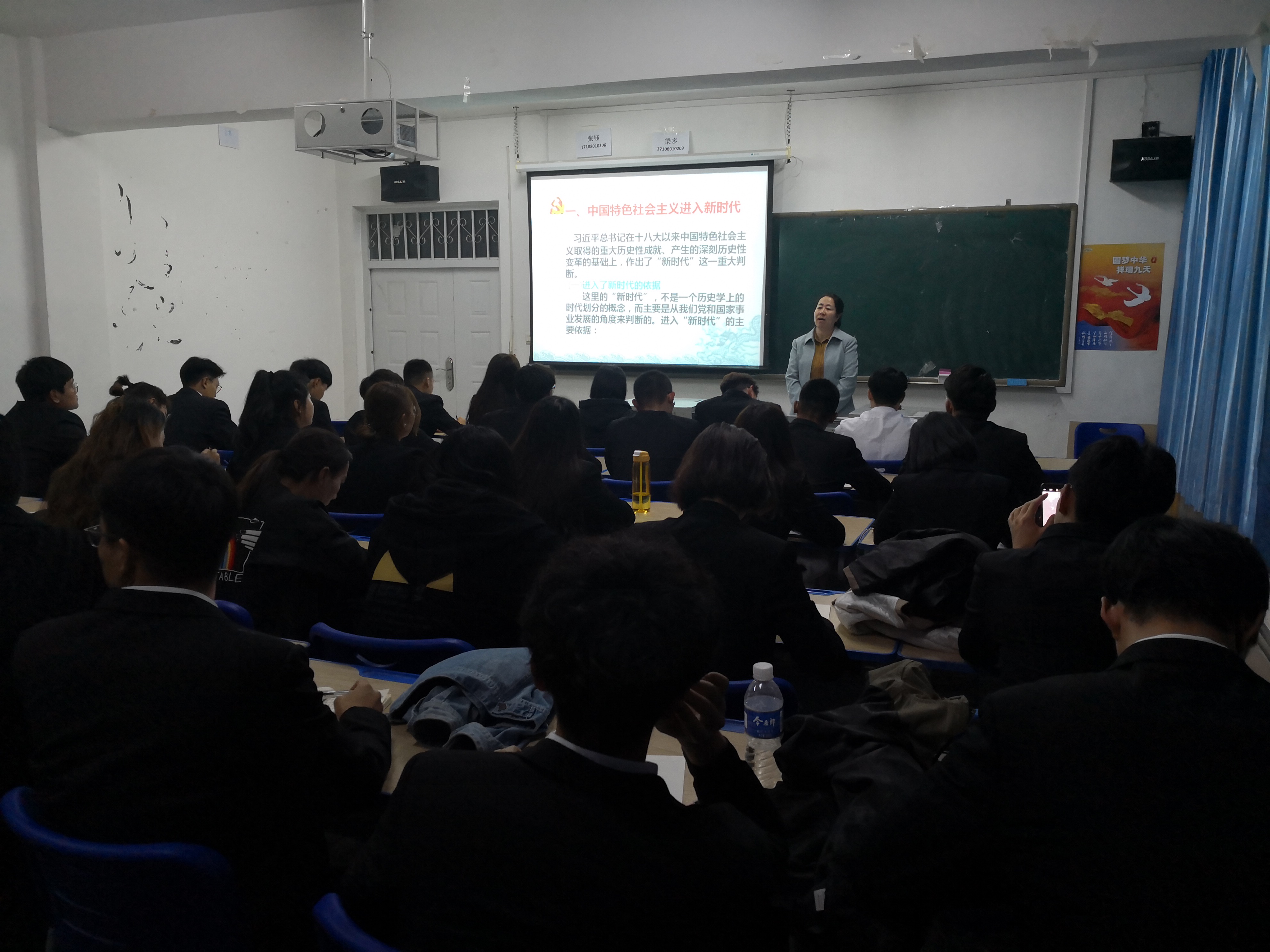 党总支书记孙伟勤以新时代、新使命、新青年为主题,紧紧围绕中国特色社会主义进入新时代、新目标与新征程、青年使命担当,讲解了习近平新时代中国特色社会主义思想以及习近平总书记在党的十九大报告、在与在北京大学师生座谈会上的讲话中对当代青年成长提出的要求和期望。她指出,作为新时代的青年应该要有家国情怀,锤炼专业技能,提升综合素养,把青春的责任与使命扛在肩上,勇立时代潮头,爱国、励志、求真、力行,奋力书写新时代中国特色社会主义,努力成为有理想、有本领、有担当的新时代有为青年。