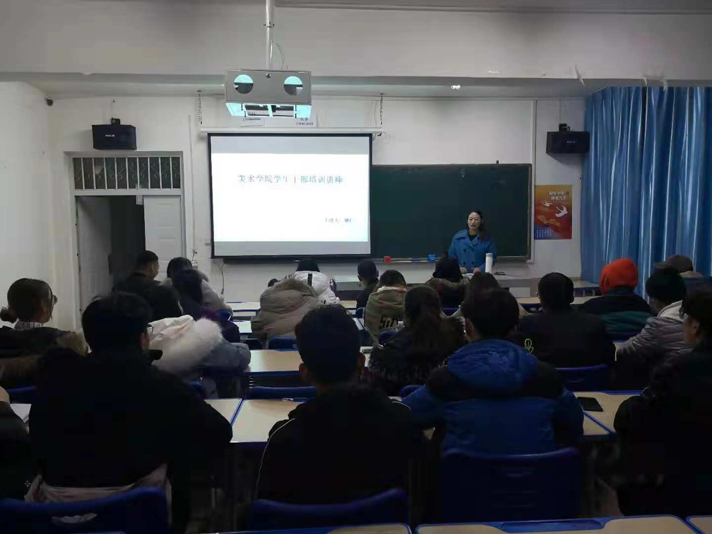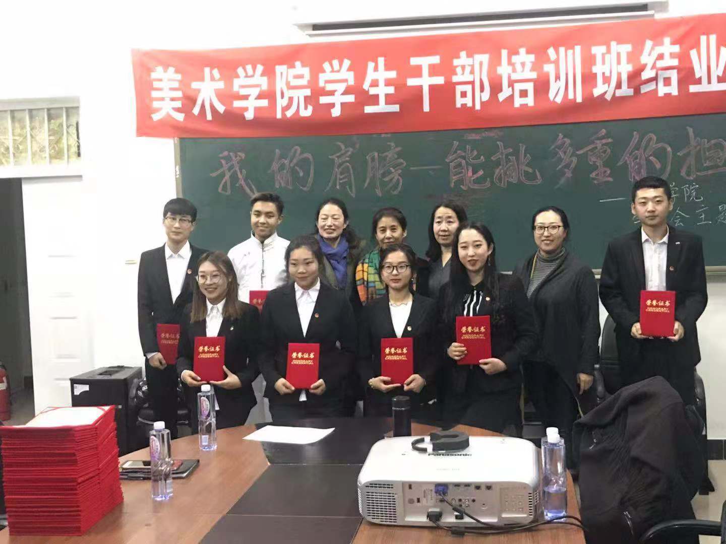 美术学院学生干部培训班于12月2日圆满结束。结业典礼在明雅楼5楼会议室举行。美术学院党总支书记孙伟勤、副院长王素娟、团总支副书记白哈斯、创业就业办主任娜仁及50多名学员参加了结业典礼。