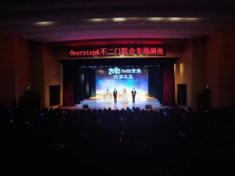 12月10日晚,美术学院over step 吉他社与不二门话剧社社团在学校大剧场联合举办专场演出,400多名师生现场观看了演出。