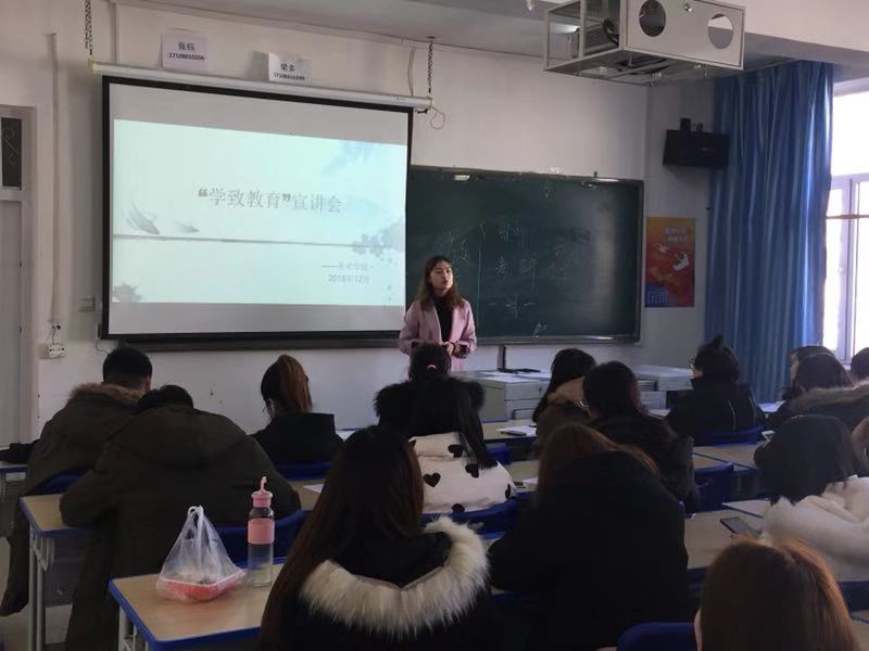 12月26日中午,美术学院在明雅楼301教室举办了2019届毕业生招聘会暨用人单位宣讲会。学致教育机构、赤峰市蓝多奇教育培训学校有限公司进行了招聘宣讲。美术学院副院长王素娟、创业就业办公主任娜仁及2019届毕业生参加了宣讲会。