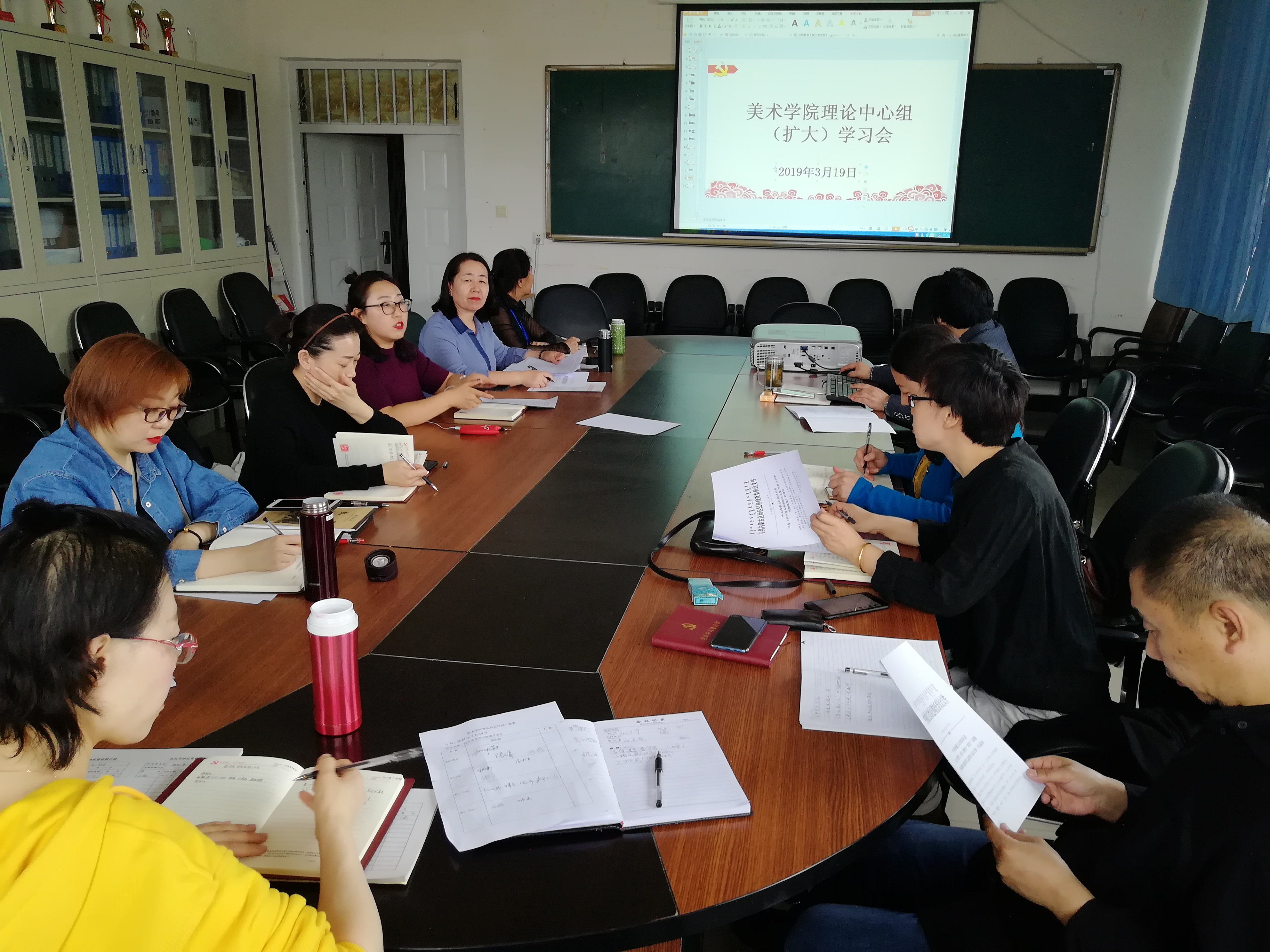 3月19日下午,美术学院在明雅楼501会议室召开党总支理论中心组(扩大)学习会,党总支书记孙伟勤主持会议,党总支委员、党支部书记及支部委员参加。