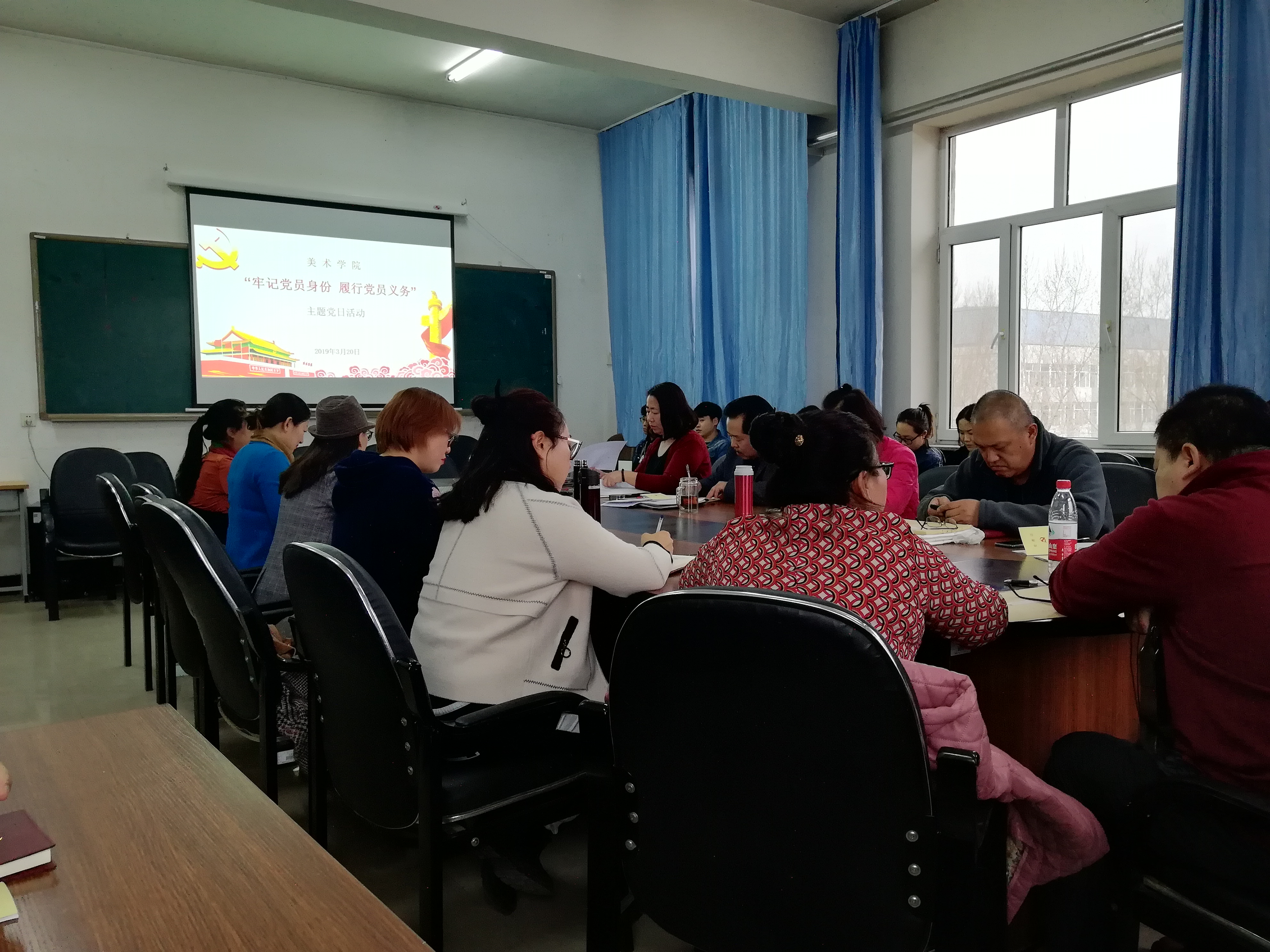 3月20日下午,美术学院党总支所属教工第一党支部、教工第二党支部、学生党支部3个党支部在明雅楼501室联合开展了牢记党员身份,履行党员义务主题党日活动,32名党员参加了活动。
