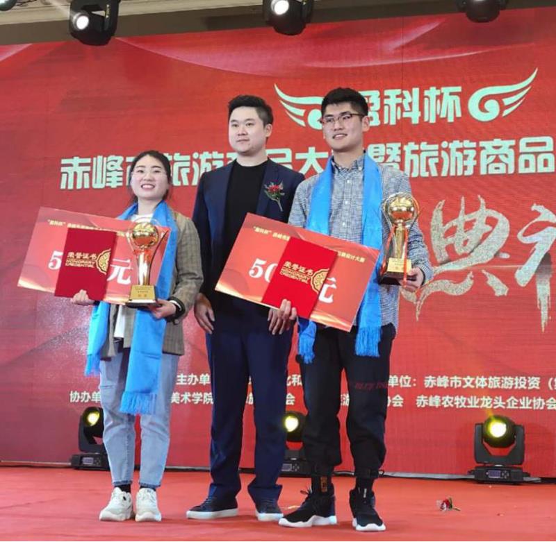 盈科杯旅游商品大赛暨旅游商品包装设计大赛由赤峰市文化和旅游局主办,赤峰市文体旅游投资(集团)有限公司承办,beat365官方网站美术学院协办。大赛以融合创新赤峰游礼为主题,设置总奖金20万元,全方位展示了赤峰旅游商品的特色和内涵。本次比赛共有150余名企业、高校和个人参赛,征集作品293件,涵盖旅游商品、旅游商品包装设计两大类别。美术学院师生优异成绩的取得,全面展示了平面设计专业的教学成果和同学们的专业设计能力,受到了与会企业的肯定和好评。