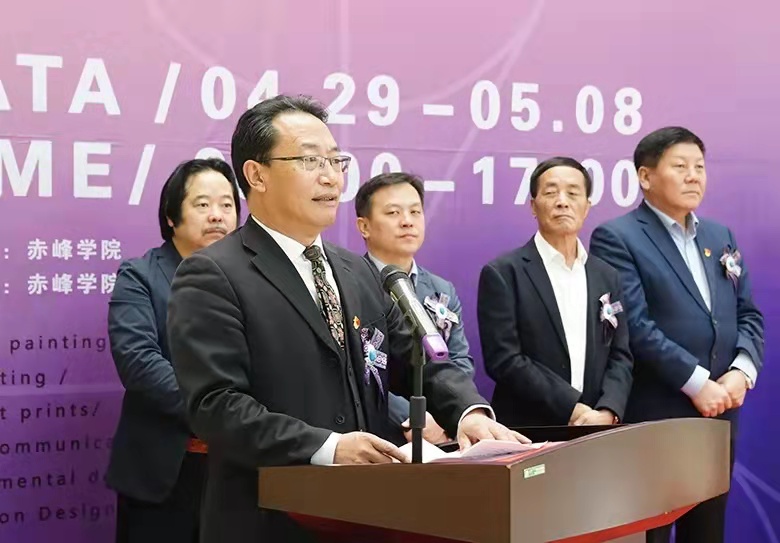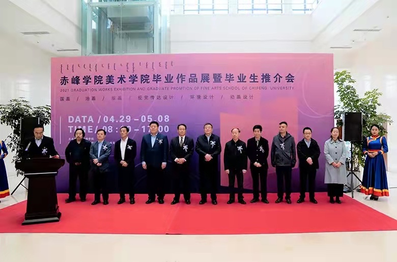4月29日上午,美术学院2021届毕业生作品展暨毕业生推介会在赤峰美术馆举行。赤峰市政协副主席于凤先、赤峰市书法家协会主席吴银成、著名书法家苏涛出席开幕式。出席开幕式的学校领导有校长雷德荣,副校长徐振军、布仁吉日嘎拉。赤峰市文化艺术界人士,招聘单位代表,beat365相关职能部门和部分二级学院主要负责人、美术学院领导班子成员、部分教师和学生代表参加了开幕式。徐振军副校长主持开幕式。
