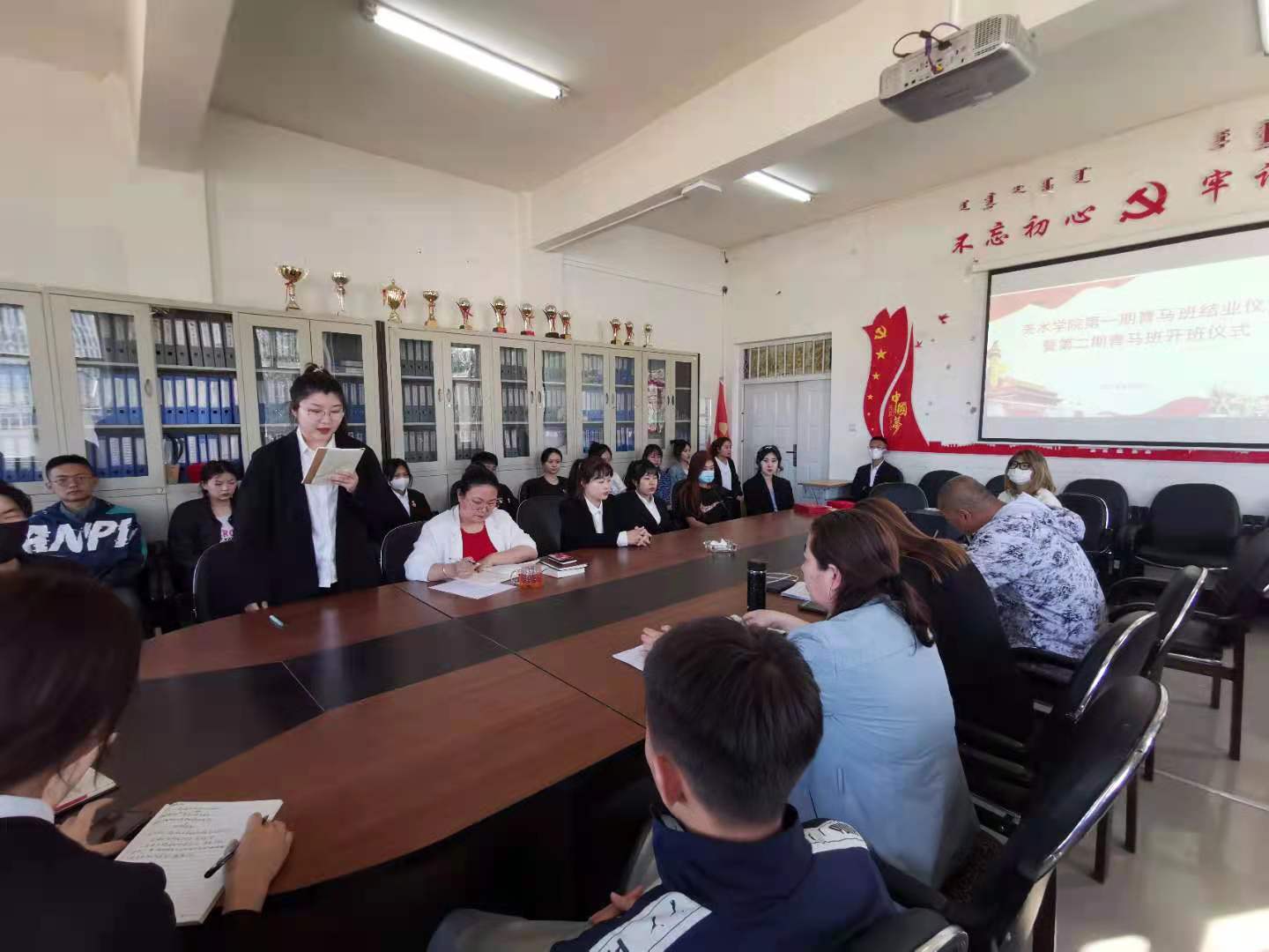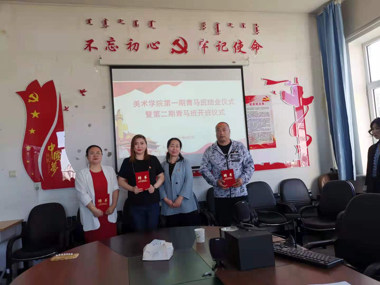6月2日,美术学院第一期“青马”研习班结业暨第二期开班仪式在明雅楼501会议室举行。美术学院领导班子成员、团学工作负责人、“青马”班导师以及全体学员、学生代表参加了仪式。