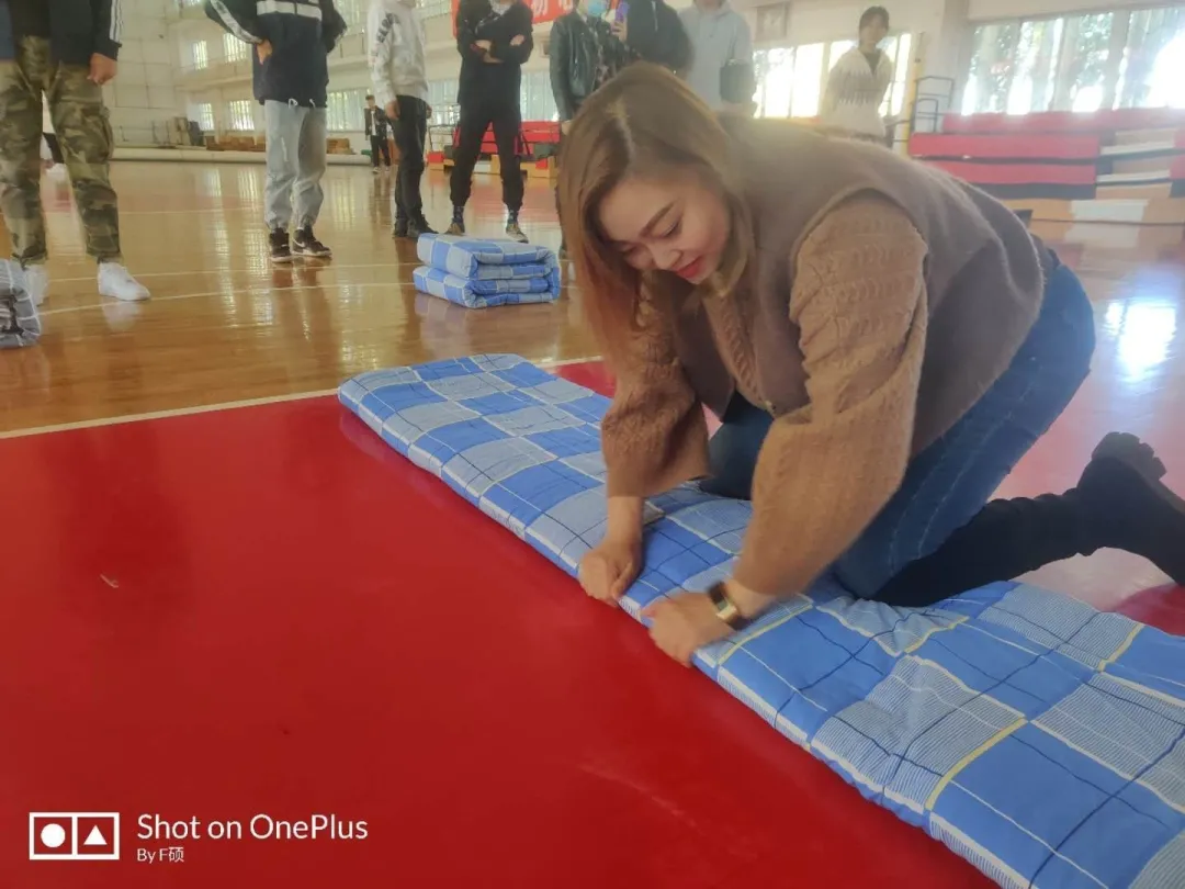 比赛伊始,随着裁判员的一声令下,同学们开始抖被子,拉被角,整形状并压平压实,叠法熟练,动作娴熟,精益求精。在规定的时间内,同学们的被子都改头换面,一个个棱角分明、方方正正的豆腐块呈现出来。经过两番的角逐,20级工艺美术班李文龙、19视传一班王康两名同学获得一等奖,19级环境设计班师培培、20级视传二班潘欣宇、20级视传一班孙强三名同学获得二等奖,20视传二班王兴达、19级蒙班艾吉木、20级蒙班孟克图拉噶、19级环境设计班田晓娟、20级视传一班张伊五名同学获得三等奖。期间,辅导员王琨、徐明明、卢枭老师的叠被子表演把比赛推向高潮,现场气氛热烈。