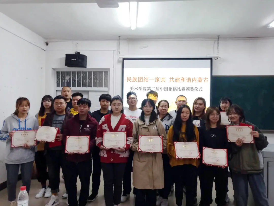 比赛中,棋手们全神贯注,在棋盘上排兵布阵,兵来卒往、炮飞马跳,招招逼人,现场气氛相当热烈,经过七轮激烈角逐,团体第一名由18级视传1班苏卓珉、19级环艺班刘世焜、20级工美班王舒欣、19级汉美1班聂惠宇组成的C队勇夺;由18级工美班郭浩东、18级视传3班赖宏发、20级蒙美班吉日嘎拉、19级环艺班张轲组成的G队勇夺团体第二名;由19级汉美1班黄章志、19级工艺班乔佳、20级视传2班王兴达、20级蒙美班郑晶晶组成的H队勇夺团体第三名;男子组19级环艺班刘世焜七战全胜勇夺个人赛第一名,18级工艺班李建忠、18级工美班郭浩东勇夺第二名,19级汉美1班黄章志、18级视传3班赖宏发、20级视传2班王兴达勇夺第三名。20级工美班王舒欣勇夺个人赛女子第一名,20级环设班富瑞博琦、19级汉美1班聂惠宇、18级汉美1班李晴晴勇夺第二名,19级工美班李毅、19级工美班王帅迪、19级工美班乔佳、18级汉美1班宋旭然勇夺第三名。19级汉美1班黄章志荣获最佳男棋手,20级工美班王舒欣荣获最佳女棋手。