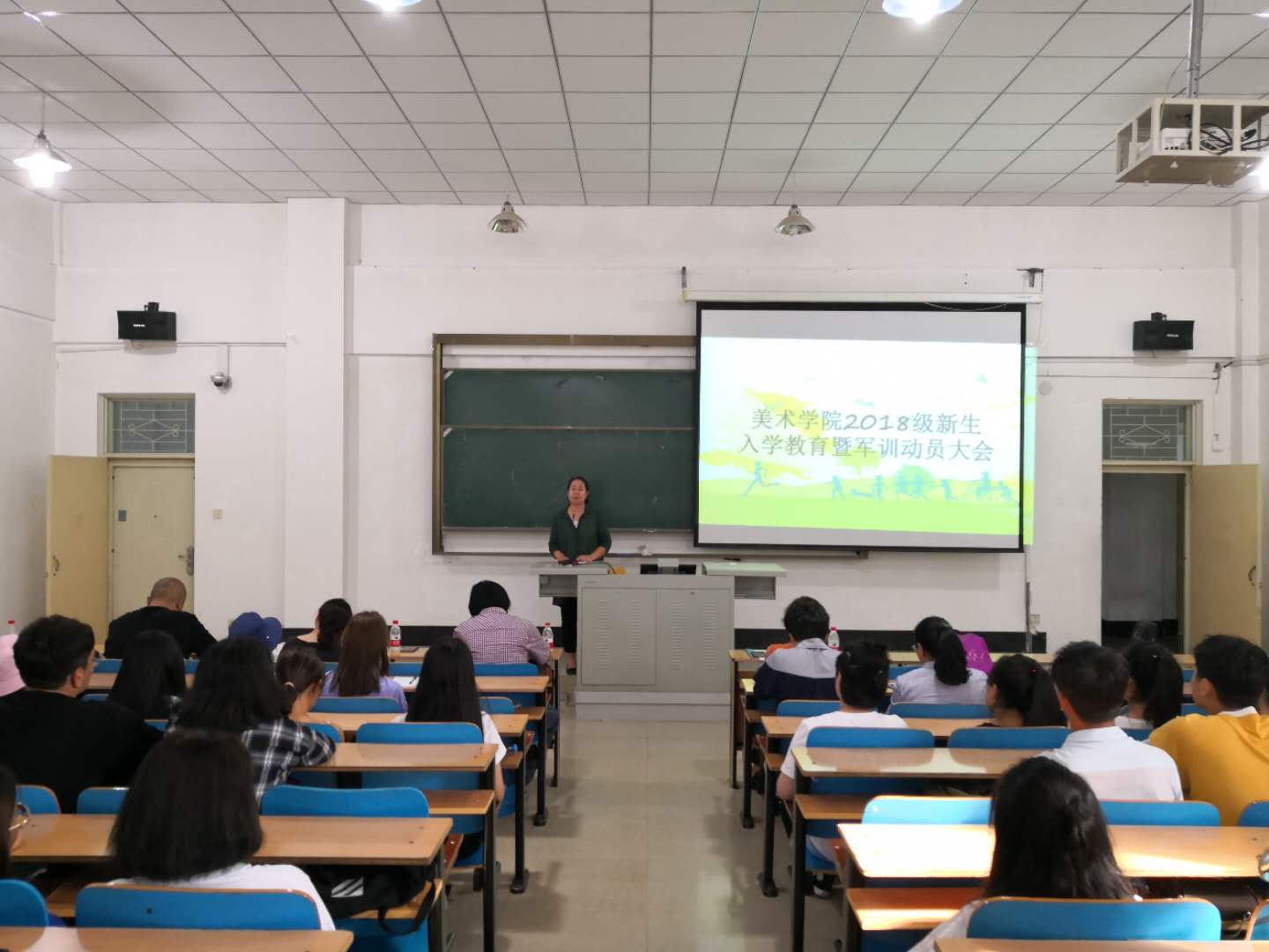 为了使2018级新生尽快适应大学生活,尽快融入新的集体,8月19日下午,美术学院在崇楼101教室召开2018级新生入学教育暨军训动员大会。学院领导班子成员、学工办及团总支负责人、部分班导师、老生代表及2018级新生辅导员、2018级新生150多人参加了会议。