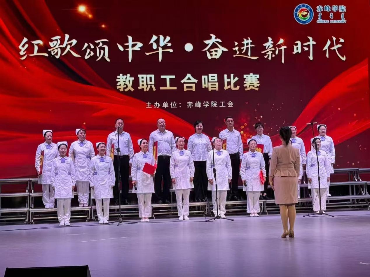 备赛与比赛期间,教职工利用课余时间认真排练,从发声到队形反复打磨,尽显严谨细致的态度与团结奋进的劲头。比赛现场,参赛教职工身着整齐服装,精神饱满地完成比赛。所选曲目《团结就是力量》歌声铿锵,唱出了护理学院团队日常互帮互助、攻坚克难的协作精神;《打靶归来》节奏明快,展现出教职工积极向上的风貌,传递对祖国的美好祝愿。
