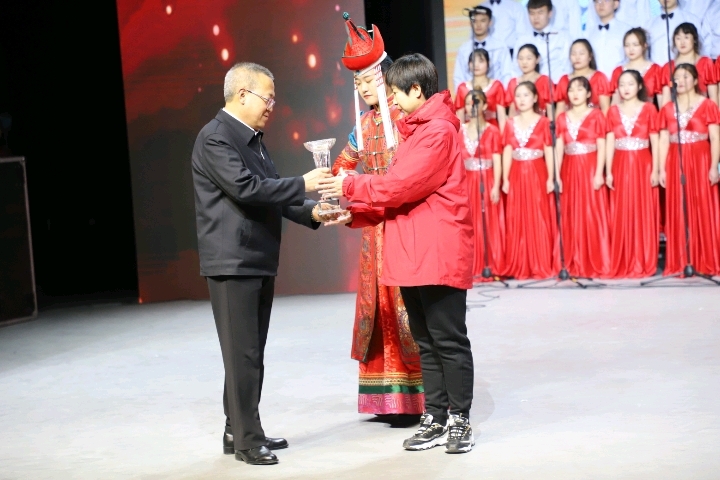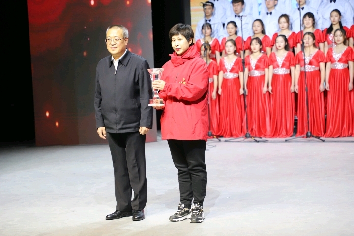 我院合唱代表队以一首铿锵有力的抗疫主题歌曲《坚信爱会赢》荣获比赛一等奖,由校党委刘万虎书记颁奖,驰援武汉医疗队队长程艳艳代表护理学院上台领奖,护理学院师生全体成员起立,迎接这激动人心的一刻,现场掌声雷动。