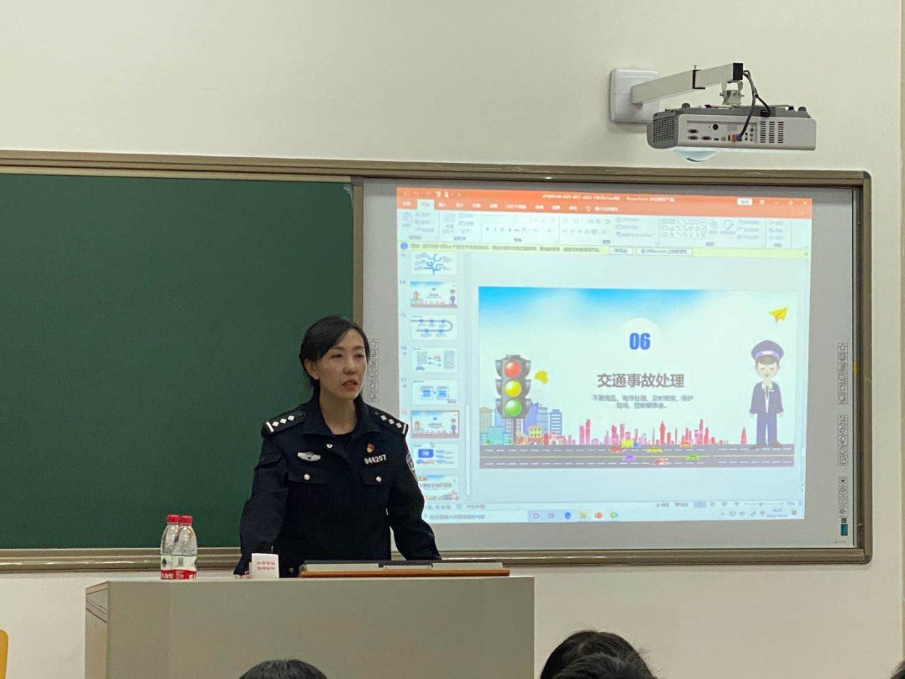 在交通安全教育讲座中,杨磊警官结合交通事故具体案例,采用提问互动等形式,分析了横穿马路、无证驾驶、酒驾、超载等行为的危害性以及发生交通事故应如何处理,告诫大家应提高交通安全意识,遵守交通法规,教育同学们牢记“生命诚可贵,健康价更高;若无安全在,二者皆以抛”的警句,切实保护自身安全。