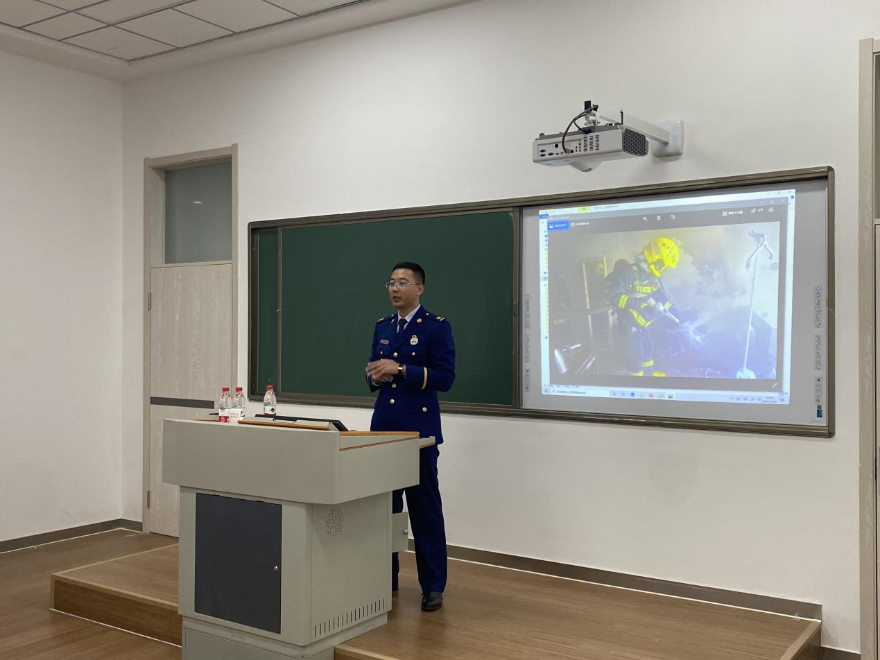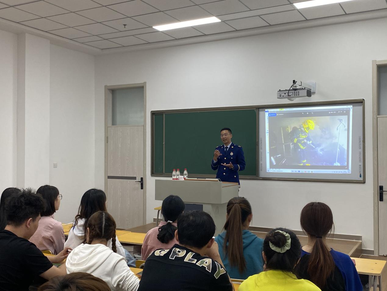 在消防知识讲座中,高佳源警官围绕常见的火灾案例,结合视频、图片等形式生动直观的为同学们进行了消防安全知识、逃生技能的培训。帮助同学们了解和掌握如何树立消防意识、如何预防火灾、如何扑灭火灾、火灾现场如何逃生等,详细讲解应该如何从我做起做好安全应对措施,告诫同学们要注意校园消防安全。