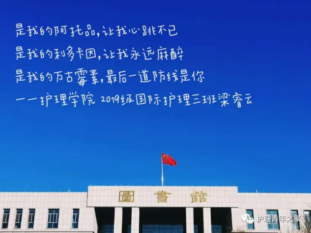 巴黎有一块墙,叫蒙马特爱墙,上面写满了由全世界语言说的“我爱你”。羞于直接向你表达爱意的我,在这个特殊的日子里用医学生的专属情话诉说对护理学院满满的爱。短短三行道不尽深沉的情感,深藏于诗的是同学们深沉的爱意。