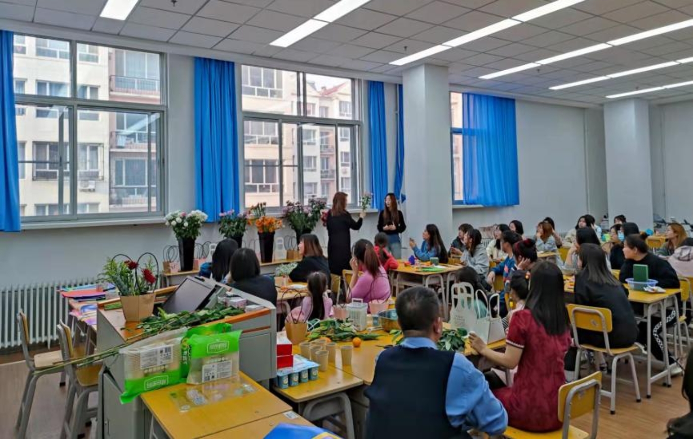 11月20日,护理学院面向解放街校区全体学生,在解放街校区217教室举办“花之灵魂,美之艺术”创意插花活动。活动邀请美术学院王琨老师作为指导教师,护理学院领导班子及部分教师参加活动。