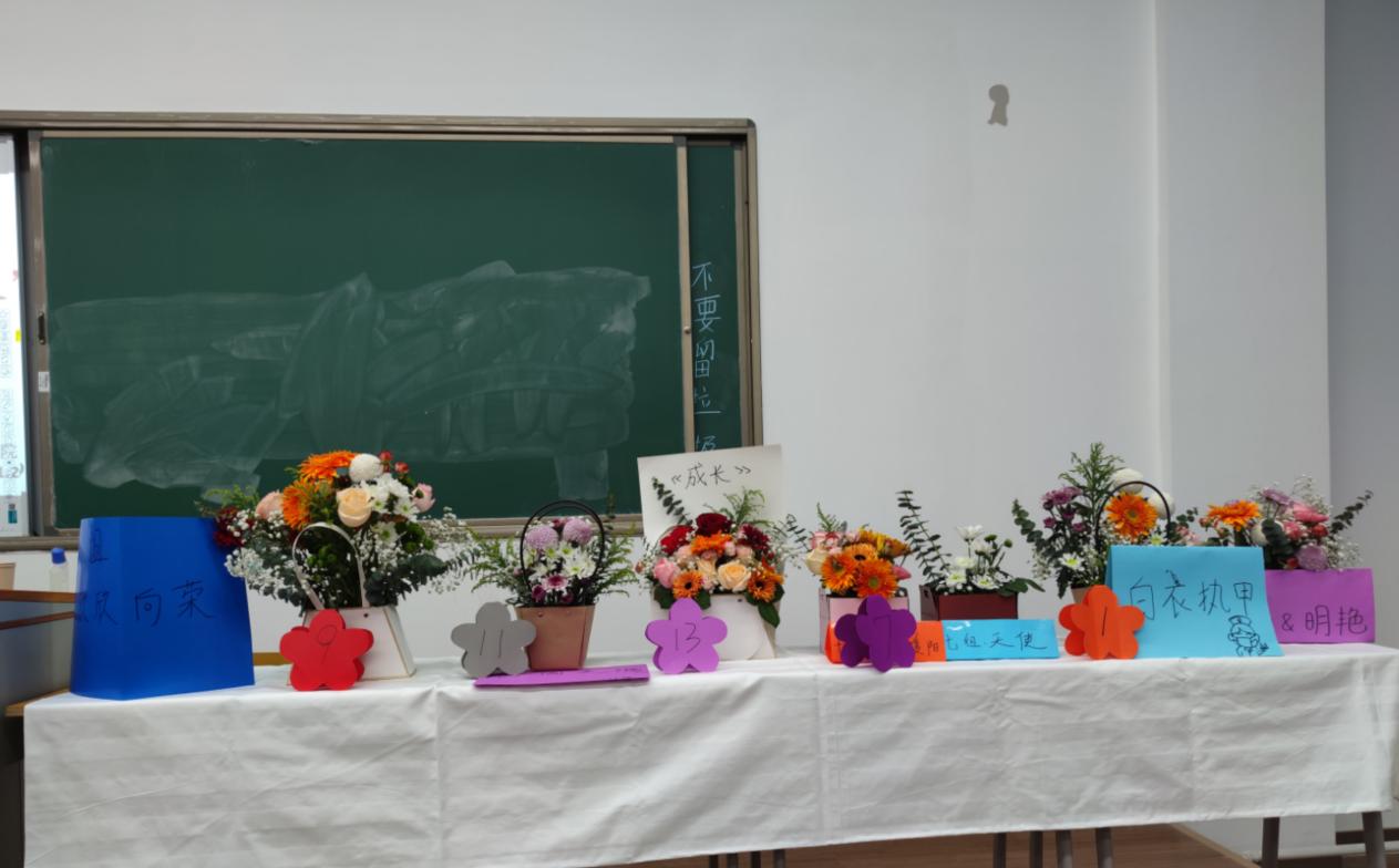 本次活动共14组选手参赛,先由王琨老师介绍了插花的方法技巧和花材的种类,随后每组同学在限定的50分钟内以自选主题的形式现场完成插花作品,最终通过老师及现场同学的打分点评,评出一等奖1名,二等奖2名,三等奖3名。
