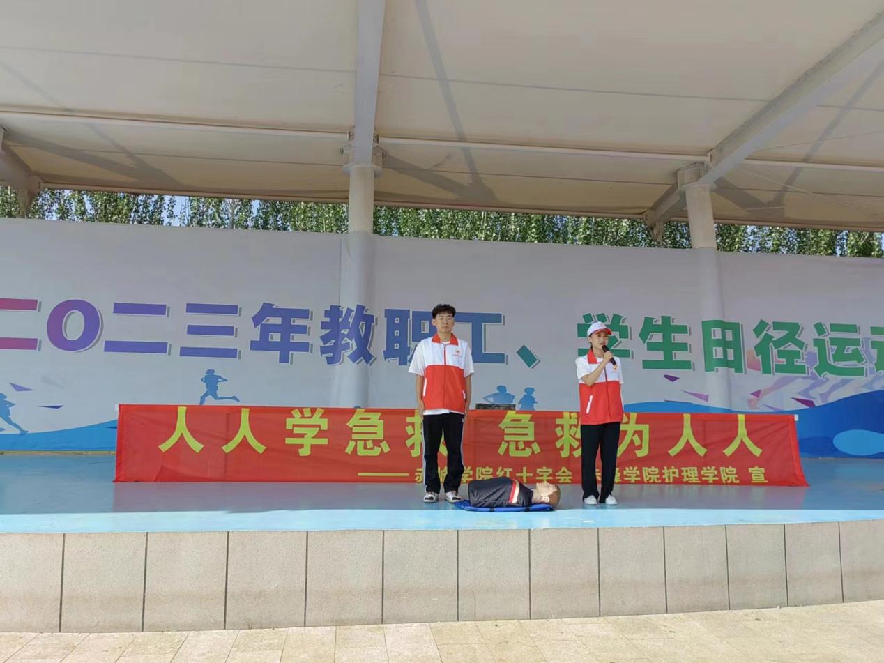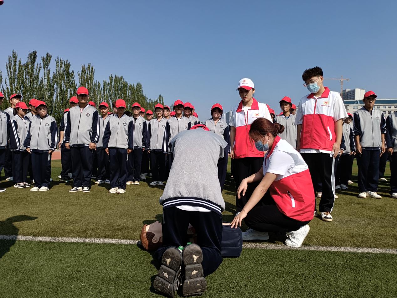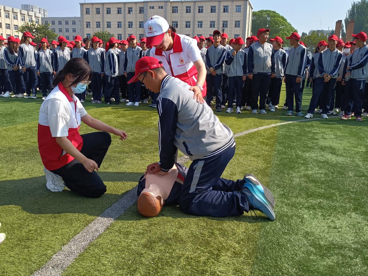 9月7日上午,学校红十字会以新生军训为契机,精心安排师资,在军训场上组织3000余名新生开展了“人人学急救,急救为人人”心肺复苏急救技能培训。
