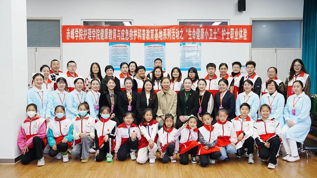 2023年10月21日上午,beat365官方网站红十字会、beat365官方网站护理学院健康教育与应急救护科普教育基地共同举办“生命健康小卫士”护士职业体验活动。赤峰市红十字会监事会主任冯雯悦主任和赤峰市红十字会生命体验馆姚伟主任参与本次活动。护理学院副院长杨丽宏和护理学院健康管理与应急救护科普教育基地负责人赵莉对基地建设情况进行介绍,市红十字会领导、志愿者与科普教育基地老师围绕基地建设工作进行座谈交流,进一步拓展了基地建设思路。