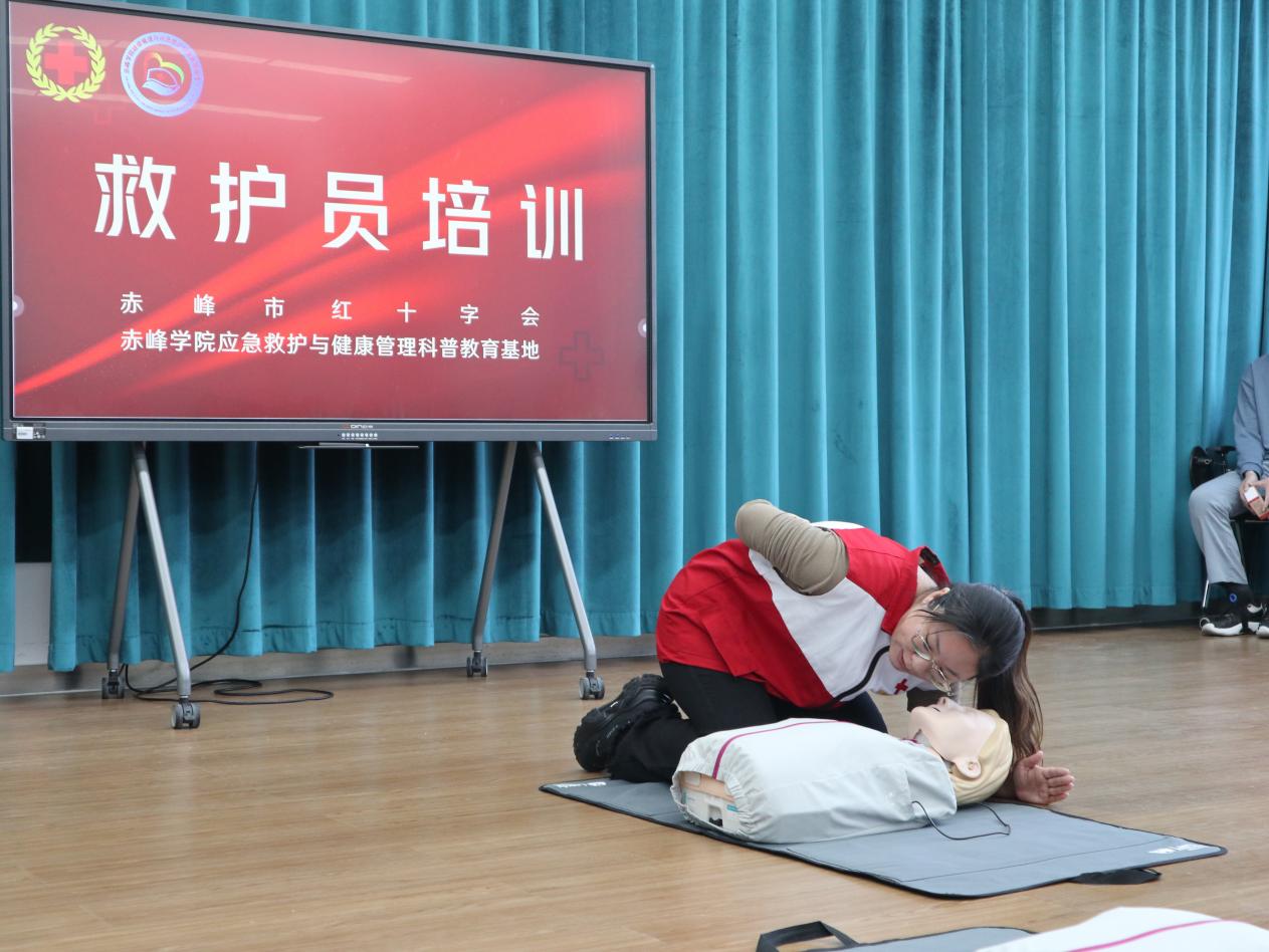 此次培训由赤峰市红十字会资深师资、基础医学院刘青妍老师主讲,从创伤救护技能、心肺复苏技能方面进行重点培训。