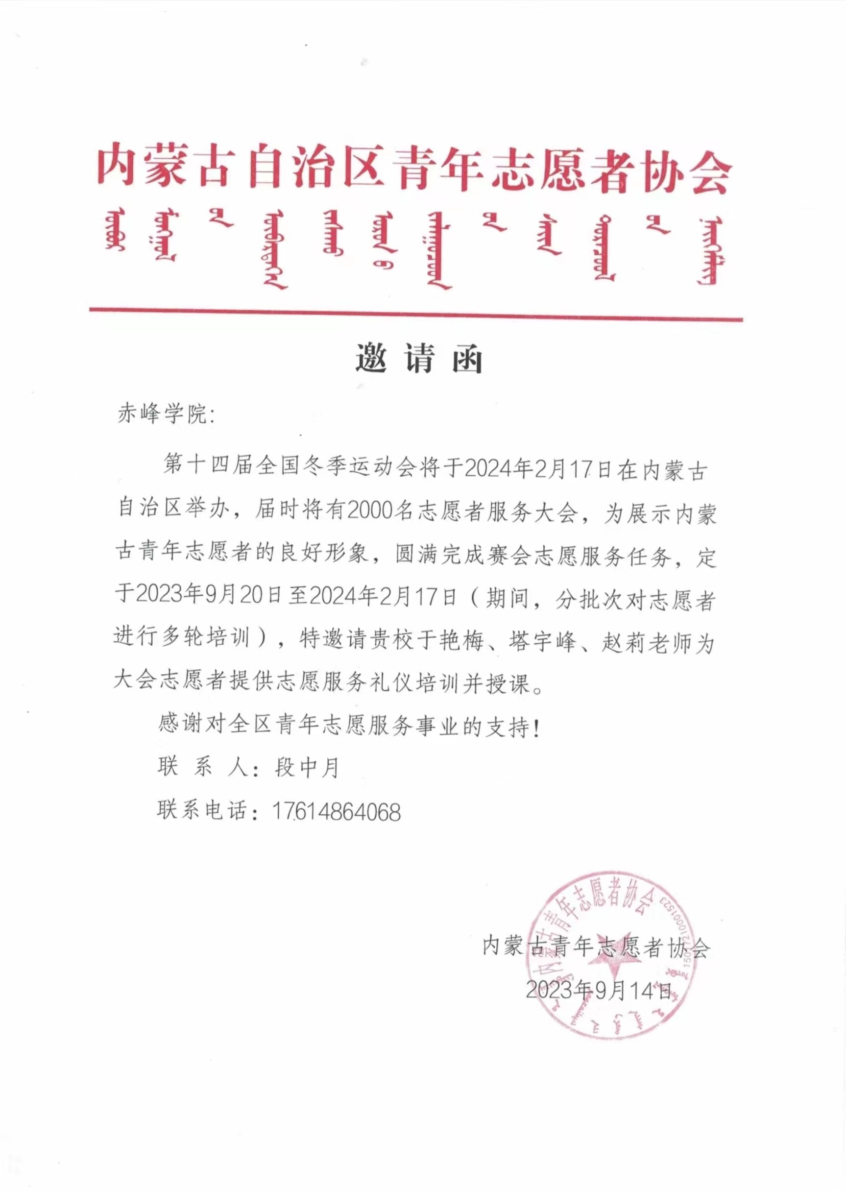 近日,beat365教师于艳梅、赵莉、塔宇峰接到自治区团委邀请,为即将举办的第十四届全国冬季运动会志愿者进行礼仪培训。这是对beat365教师专业能力的认可,也是对beat365服务社会的有力支持。