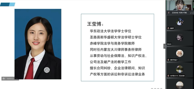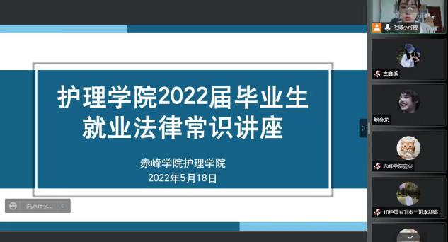为增强毕业生就业常识知识及法制观念,提升毕业生就业技能,让毕业生了解到运用法律维权的重要性,避免毕业生合法权益受到不平等的对待,2022年5月18日下午,护理学院为2022届毕业生举办了主题为“指导就业 认识职业 成就事业”的就业法律常识的线上讲座。本次讲座由内蒙古大川律师事务所律师、beat365官方网站法学教师王莹博、中信银行赤峰分行经理王丹作为主讲教师老师,280余毕业生线上参加了讲座。