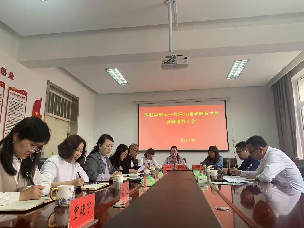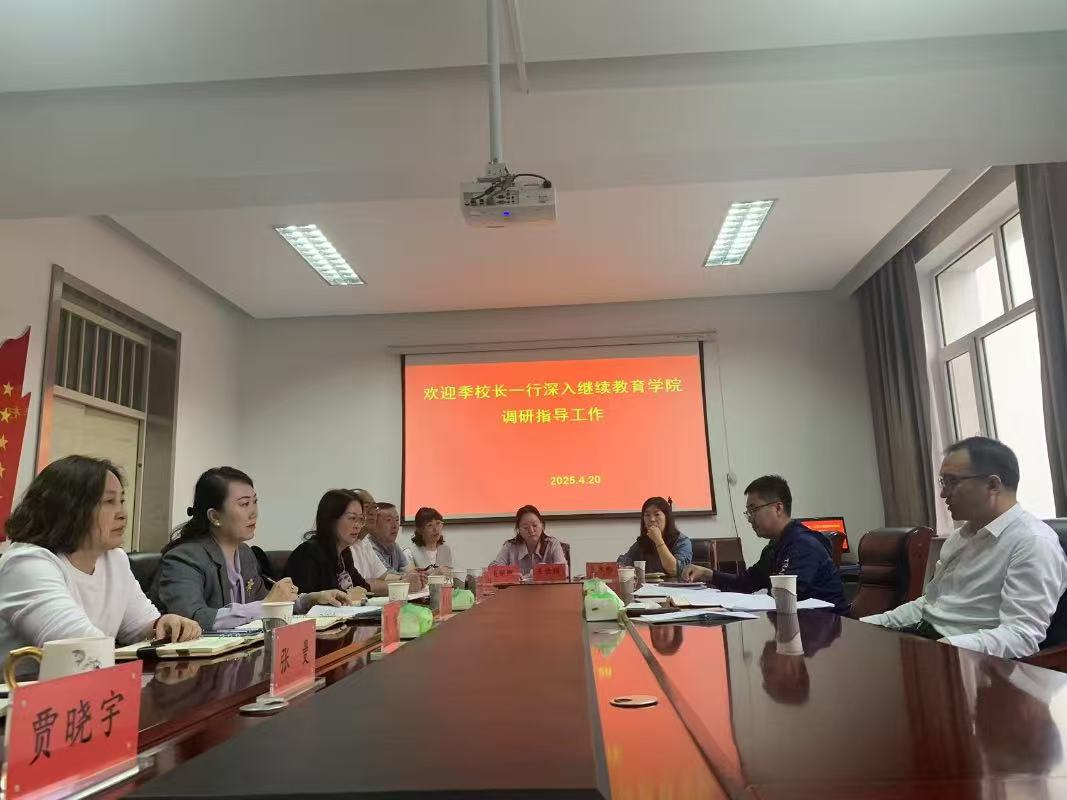 4月20日下午,季祥校长与党政办副主任李振东一行到继续教育学院调研指导工作。继续教育学院领导班子、副科级以上干部及教师代表参加调研,调研会由党总支书记李亚楠主持。