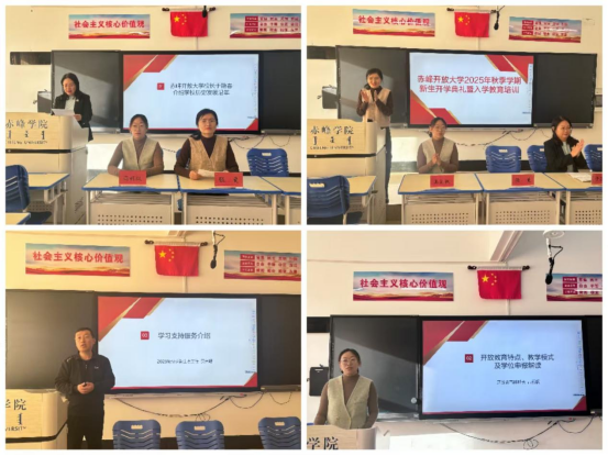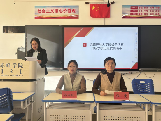 典礼上,于艳春校长以“传承办学初心,赋能终身学习”为主题,系统梳理了学校的历史发展脉络。她指出,赤峰开放大学自创办以来,始终坚守服务地方教育发展、助力全民终身学习的核心使命,不断创新办学模式,为地方培养了大批实用型人才。开放教育科科长高丽枫围绕开放教育特色展开详细解读,全面介绍了开放教育的教学模式、课程设置、考核形式、申请毕业要求及学位申报流程等新生入学8问。新生班主任贾兴超对学习支持服务体系进行专项介绍,详细说明了班主任负责制的运行机制和班级管理工作规划。最后,张曼副校长对典礼内容进行总结,她强调了开放大学体系在推进终身教育体系建设中的重要作用,以及学校在社会各界获得的广泛认可。