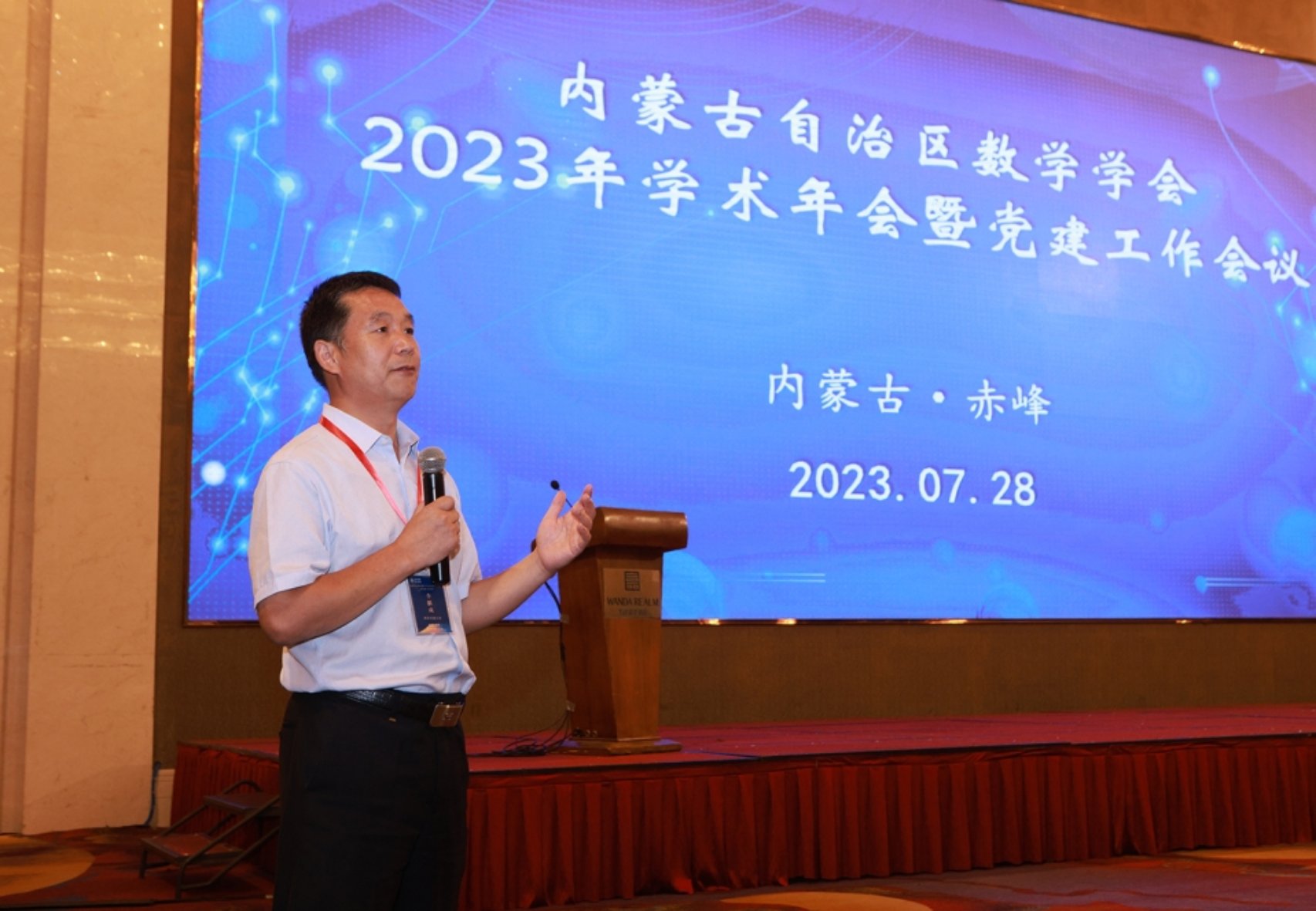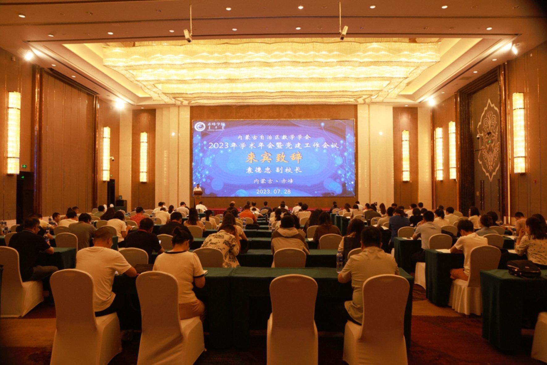 7月28日至29日,由内蒙古自治区数学学会、内蒙古大学数学科学学院主办,beat365数学与计算机科学学院承办的内蒙古自治区数学学会学术年会暨党建工作会议在赤峰市富力万达嘉华酒店召开。beat365袁德忠副校长出席开幕式并致辞。来自内蒙古大学、beat365官方网站、内蒙古师范大学、内蒙古工业大学、内蒙古农业大学、内蒙古民族大学、集宁师范学院、呼伦贝尔学院、包头师范学院、鄂尔多斯应用技术学院、通辽第五中学等全区18所高校、中学的教师代表、专家学者和研究生共100余人参会。开幕式由内蒙古大学数学科学学院院长、学会秘书长李宏教授主持。