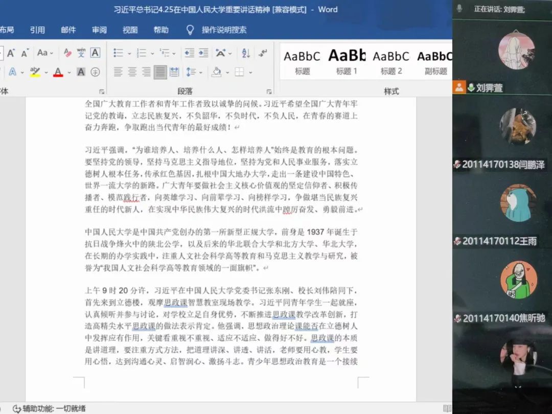 在此次主题团日活动的学习中,我院坚持理论学习与实践教育相结合,各团支部通过专题学习,分享交流,征文演讲,知识竞赛等多个渠道的学习方式开展。我院秉承习近平同志的话语坚持促进思政课教育改革创新。同时加强了院史资料的挖掘、整理和研究,还坚持把马克思主义基本原理同中国具体实际相结合等一系列举措激励同学们坚定理想信念,放飞青春梦想,赓续红色血脉