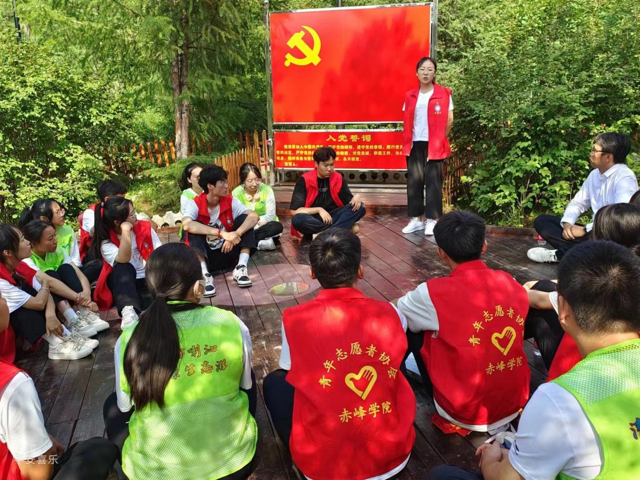 本次活动在校团委的安排下有条不紊的进行。首先,青年学生们在广场社区青年之家进行大学生暑期“三下乡”爱心家教协会授课活动,喀喇沁旗团委书记刘叶阳从七彩假期”志愿者服务实践团、学业辅导实践团等方面为大家详细介绍了青年之家建设和活动开展情况。随后,青年同学整装出发,赴马鞍山林场,领略自然风光,跟随负责人的脚步重走总书记路线,在马鞍山林场负责人和团市委书记鲁秀清的介绍下体会新时代青年使命初心。
