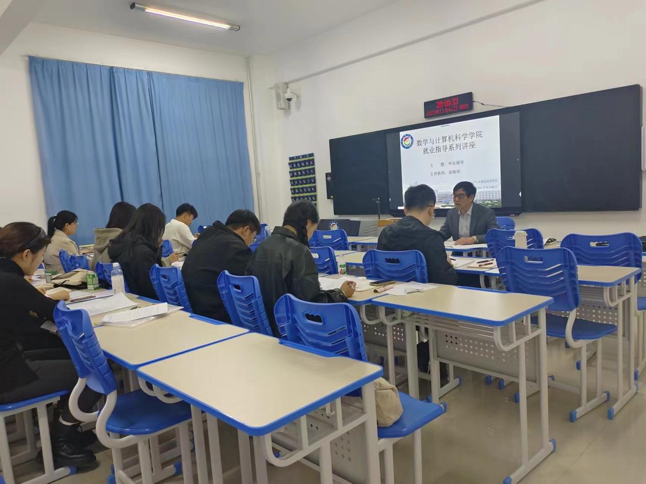 11月2日—11月4日,数学与计算机科学学院开展了“就业指导系列讲座”活动之三——申论考试指导专题讲座。本次讲座主讲人是beat365原党委委员、组织部部长徐晓明研究员,该学院2024届毕业生20余人聆听了本次讲座。