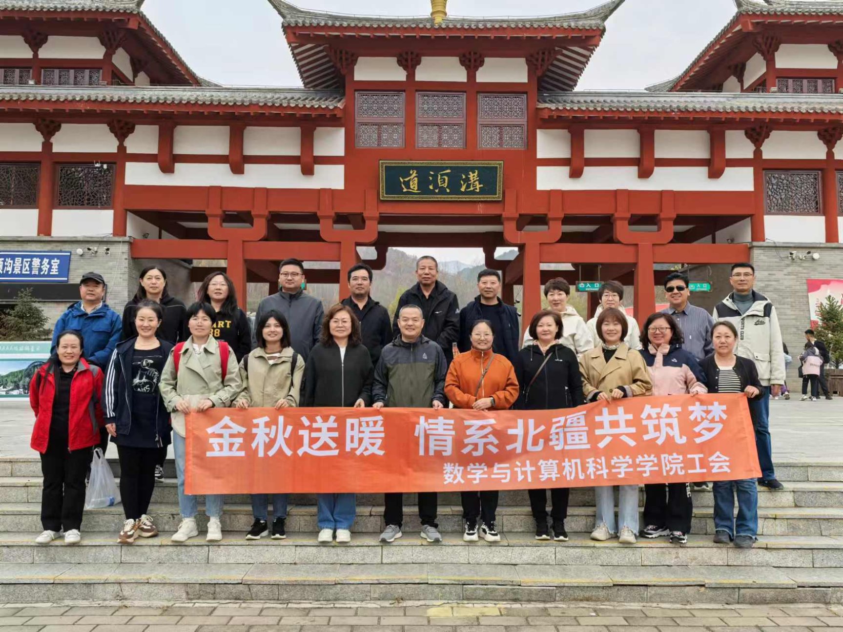 10月13日,数学与计算机科学学院工会组织教职工前往宁城县黑里河镇道须沟风景区开展了以“金秋送暖,情系北疆共筑梦”为主题的秋游活动。在数学与计算机科学学院工会的精心组织下,参加秋游的教职工们欢声笑语,结伴而行,漫步在林间,共赏北疆金秋美景。此次活动不仅让教职工们感受到了工会的温暖、祖国北疆的靓丽,更是让教职工们激发了以更加饱满的工作热情为学院的未来发展聚力前行的动力。