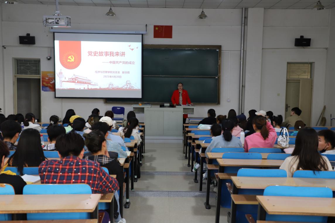 为加强青年大学生的党史学习教育,引领同学们学史明理、学史增信、学史崇德、学史力行。2021年4月21日18:00,经济与管理学院党总支书记赵景辉在综合楼117教室为同学们带来经济与管理学院第二期青马开班第一课“党史故事我来讲-中国共产党成立”党史学习教育活动。经济与管理学院青马班导师,学生党员、入党积极分子及青马班学员参加本次活动。