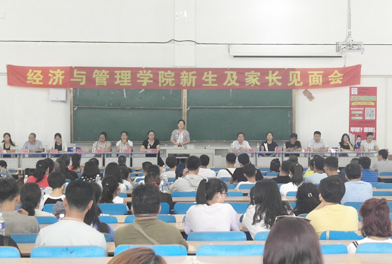 8月18日下午,经济与管理学院在崇学楼109室召开2018级新生及家长见面会。党总支书记赵景辉、院长李布和、副院长刘艳华、新生辅导员、教师代表及300余名新生及家长进行了面对面交流。