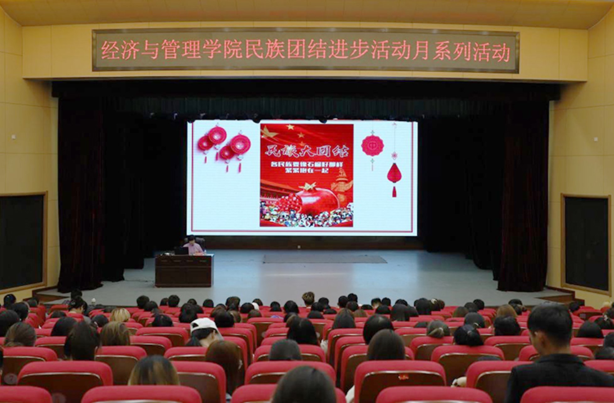在第38个民族团结进步活动月期间,经济与管理学院邀请“国家孩子”的女儿、巴林右旗人大常委会选举任免代表联络工作委员会主任宝力为青年学生讲述了一段感人至深的民族团结故事。党总支副书记孙红及300名学生聆听了讲述。