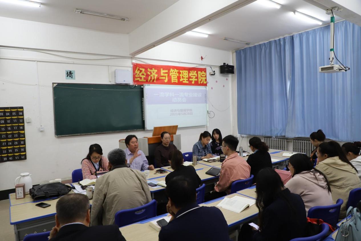 为认真贯彻《beat365官方网站一流学科建设管理办法》和《beat365官方网站一流学科建设工程实施方案》要求,5月28日下午,经济与管理学院在综合楼103召开了一流学科一流专业建设工作动员会。李布和院长主持会议并讲话。赵景辉书记,张笑蕾、陈文东副院长,孙红副书记等参加了会议。