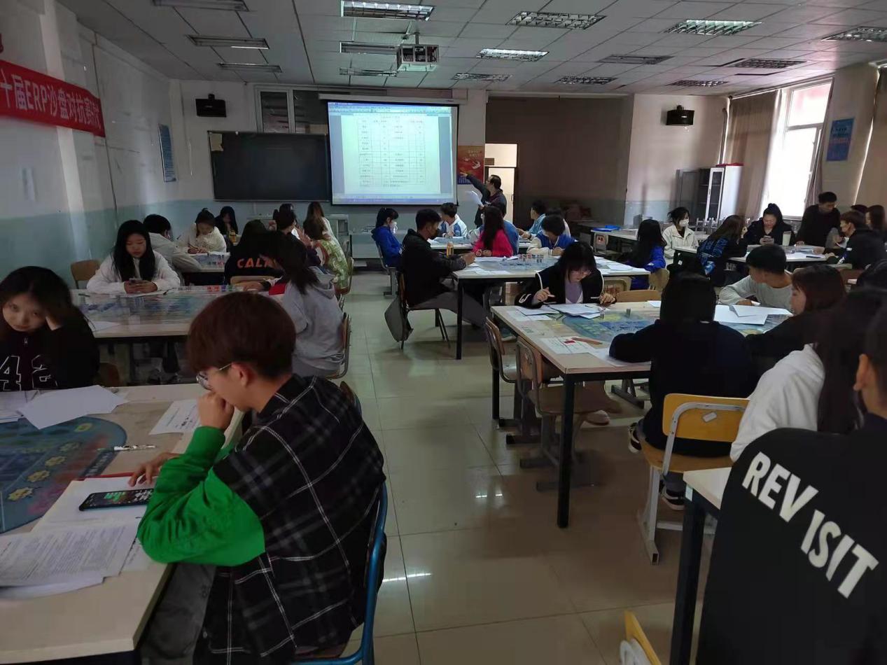 为了给学生搭建一个仿真企业平台,让学生身临其境,真正感受市场的多元化和竞争强度,经济与管理学院于10月30、31日两天在建功楼211室开展了“ERP企业沙盘模拟经营培训”。