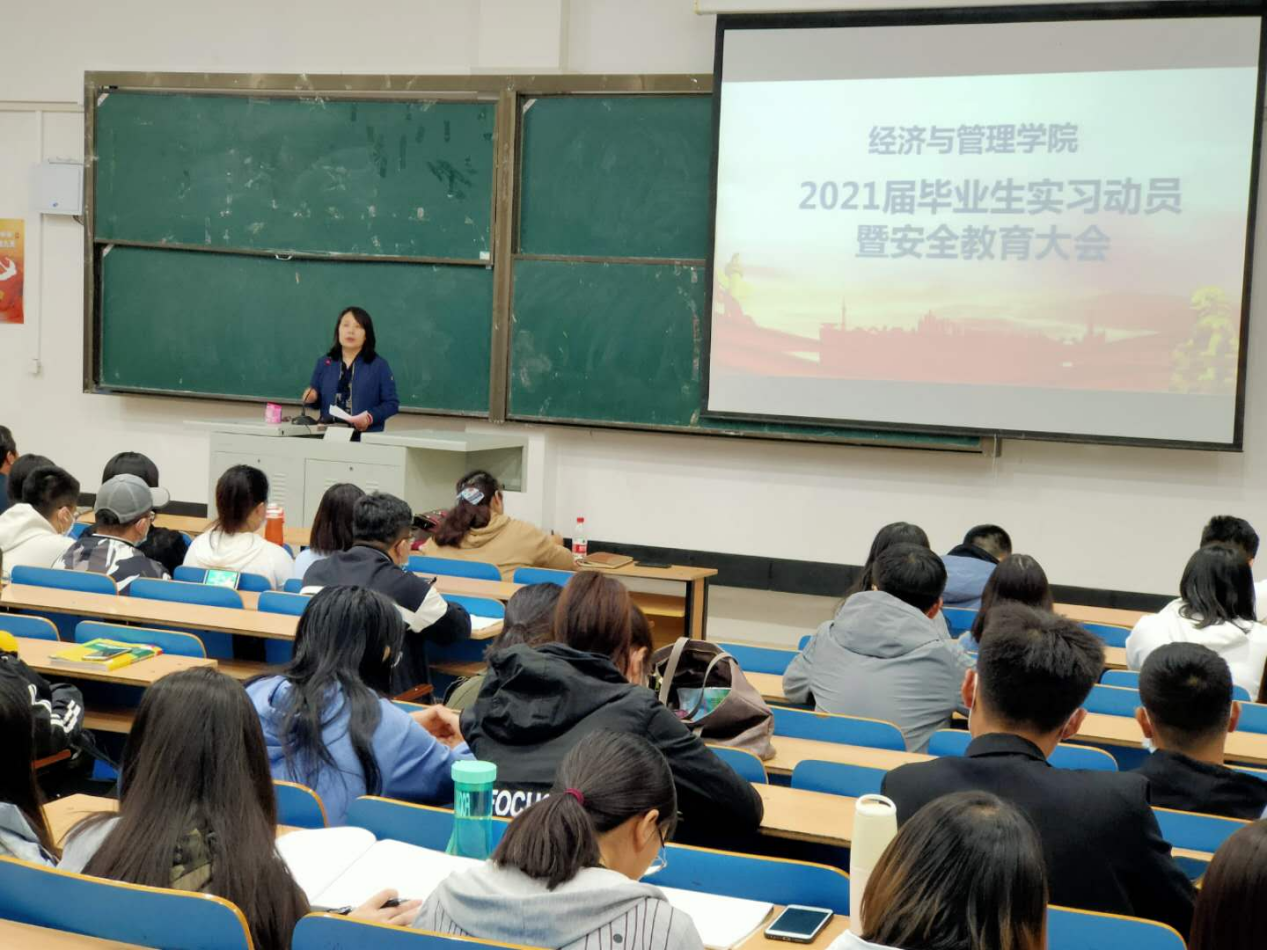 为进一步推进经济与管理学院2021届毕业生专业实习工作顺利开展,9月28日下午,经济与管理学院于崇学楼109组织召开了2021届毕业生实习动员暨安全教育大会。会议由实践教学教研室副主任刘晓琳老师主持,经济与管理学院院长李布和、副院长张笑蕾、教务办、教研室相关负责人及2021届毕业生参加了会议。