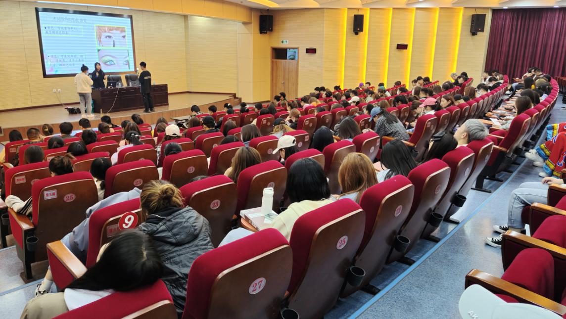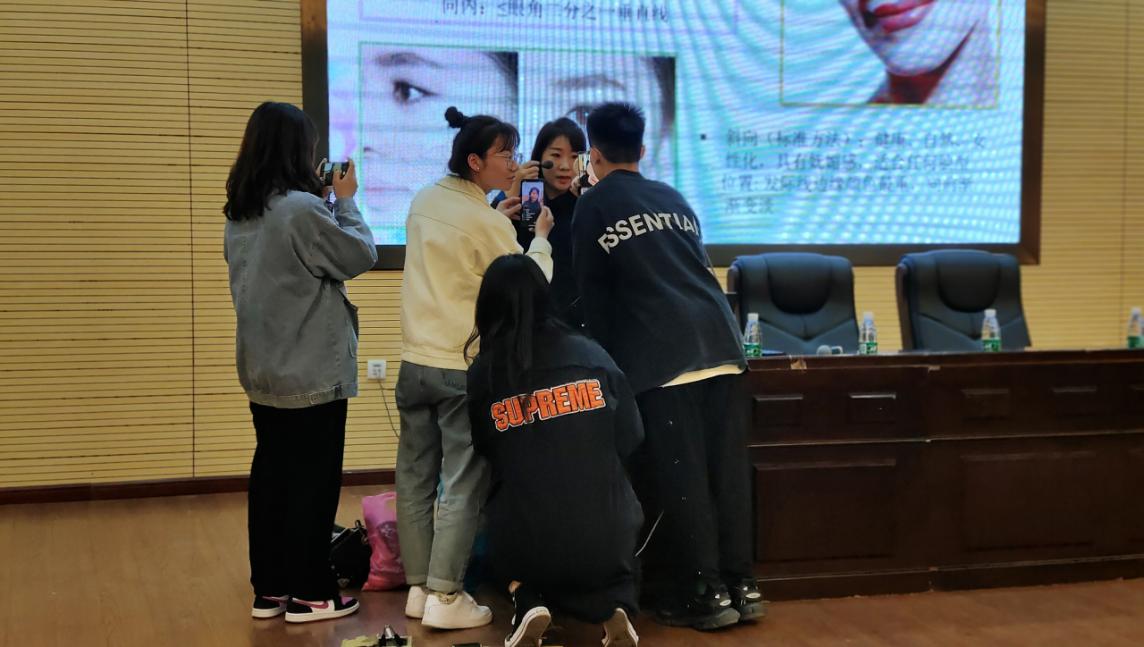 讲座中杨博士从形象的重要性、化妆基本技巧、服装的搭配等方面进行了详细的讲解,着重分析了大家在妆容上面的问题,并选择了一位女同学作为模特,进行现场的化妆效果演示,通过现场化妆,边讲解,边实际操作,使学生更加深入、直观、快速了解相关知识。本次活动历时两个小时,杨博士的讲座内容丰富,生动形象,现场互动积极热烈,让经济与管理学院在场的同学们领略了仪容仪表的风采,受到了美的熏陶同时也让学生懂得了如何塑优雅形象,提升个人气质,获得学习和生活当中的一项技能。