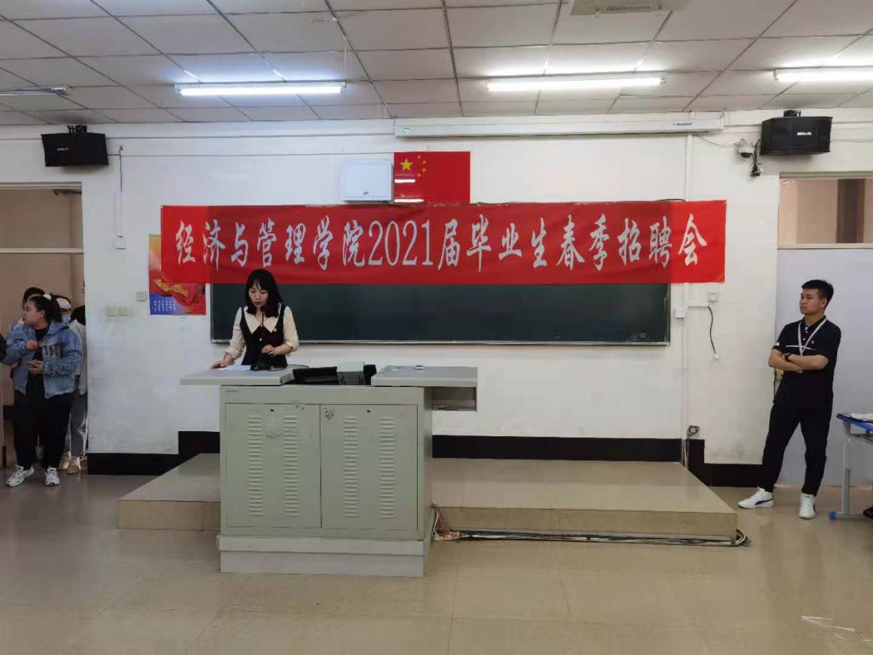 为进一步做好2021届毕业生就业工作,积极为学生拓展就业渠道。5月14日14:30,经济与管理学院在崇学楼111教室举办了2021届毕业生春季招聘会。经济与管理学院党总支书记赵景辉,院长李布和,党总支副书记孙红,团学负责人、辅导员以及应届毕业生参加本次招聘会。