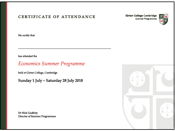 图:剑桥大学格顿学院项目证书样图
