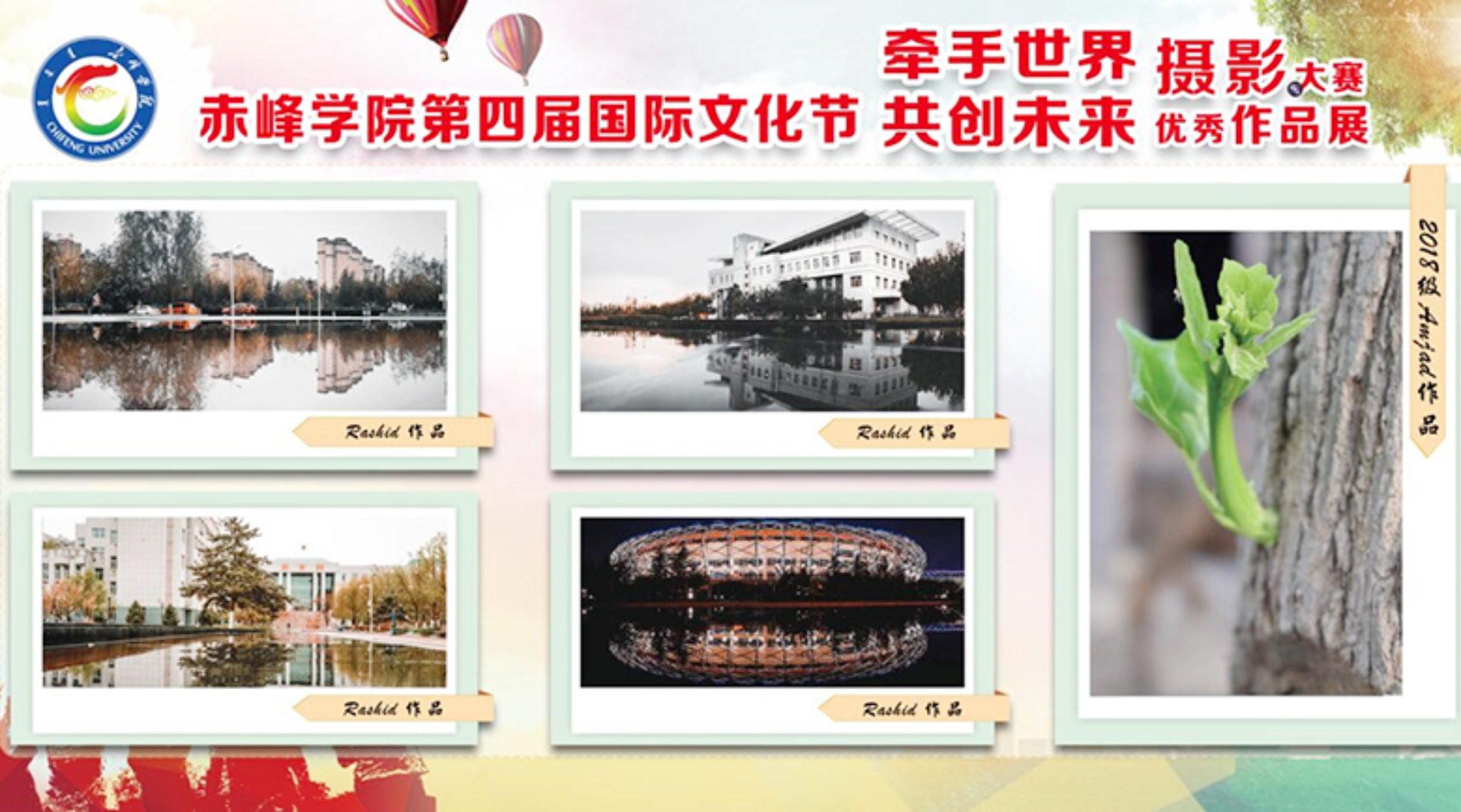 在摄影展中,参展作品大多以中国特色风景、风土人情以及赤峰市、学校的发展变化为主,充分体现了留学生们对中国、对赤峰、对学校的热爱之情。
