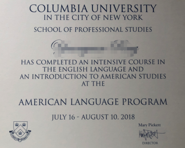 左图:哥大语言文化项目证书样图