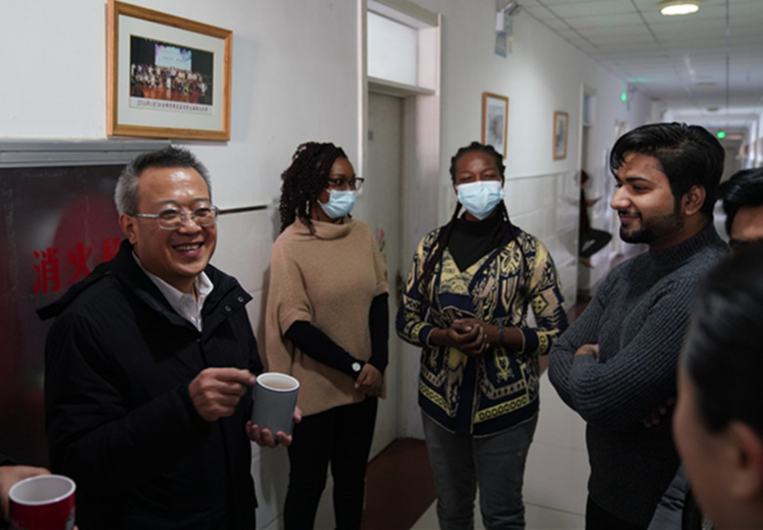 期间,留学生们还纷纷邀请刘书记一行到自己的宿舍参观做客,并热情送上了亲手熬制的奶茶。刘书记接过奶茶,一边品尝,一边开心地说:“寒冬里,这样一杯香浓的奶茶,喝进嘴里是甜的,流进心里是暖的”。被学校领导的和蔼亲切所感染,留学生们争相发言,有的对学校的关怀慰问表达了感激之情,有的表示一定会遵守各项防疫规定和管理规定,还有的表示要认真学习专业知识,为自己的祖国以及中国的发展做出积极贡献……来自苏丹的Samah用一口流利的汉语说道:“感谢学校为我们做的一切,老师们对我们很好,给予了我们很多帮助,这里就是我们的家!”(国际教育学院供稿 摄影:郭一岐 责任编辑:迟卫华)