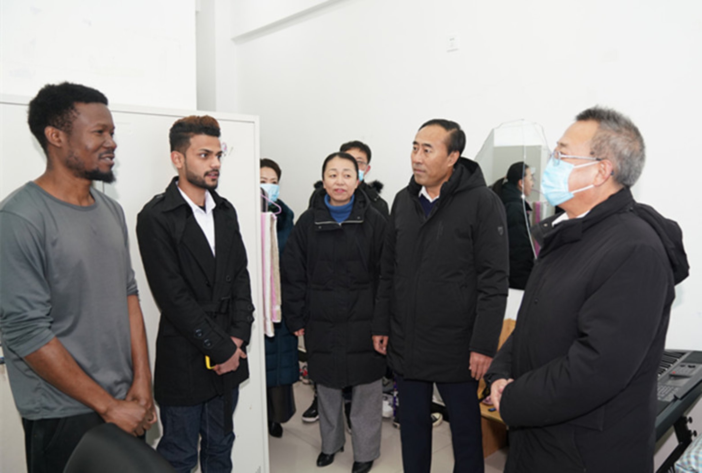 在留学生公寓,刘万虎书记认真听取了国际教育学院党总支书记葛根萨如拉关于在校留学生基本情况、国教院寒假期间各项工作安排、疫情防控措施等情况的汇报,并同留学生们亲切交谈,详细询问了他们的在校学习及生活情况,叮嘱他们继续全力配合学校做好防疫工作,科学规划假期生活,注意保暖防寒、劳逸结合,在学校度过一个平安祥和的中国年。