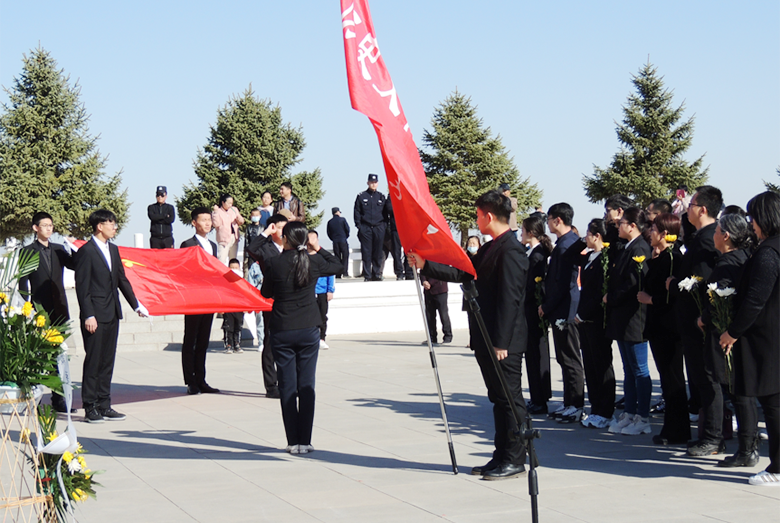 活动在全体人员高唱中华人民共和国国歌声中拉开了序幕。活动中,党总支书记徐利颖、副书记张明带领师生代表向烈士纪念碑敬献花篮,表达对革命先烈的无限哀思和敬仰之情,并在人民英雄纪念碑前庄严肃立、追思默哀。随后,在鲜红的党旗下,全体党员握拳宣誓,重温入党誓词,再次接受了心灵的洗礼,铭记庄严的承诺,牢记共产党员的政治责任、工作担当和光荣使命。期间,全体人员还一起参观了革命烈士纪念馆,通过阅读图片资料、观看实物和听取解说等方式学习了革命先烈的英勇事迹。